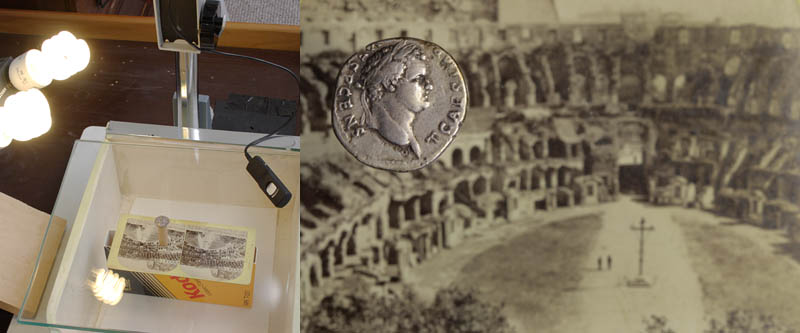 Get well soon. I just took this photo depicting my basic coin photography setup. The lamps are daylight Tungsten bulbs. I use the old wooden labyrinth-toy to accurately adjust the angle of the coin.