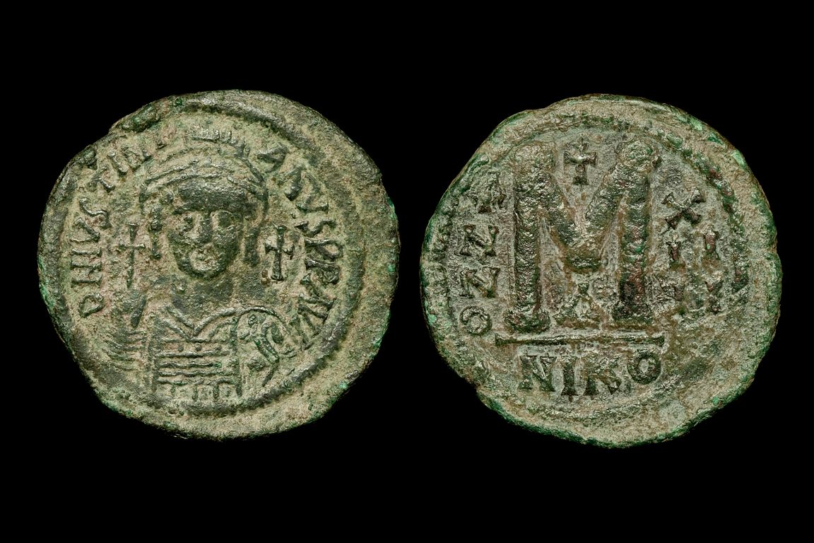 Keep one of these for when you are feeling sorry for yourself with the sniffles. Year 14 was when a plague killed a lot of Byzantines: http://en.wikipedia.org/wiki/Plague_of_Justinian This coin is used to suffering. It doesn't care if you cough.