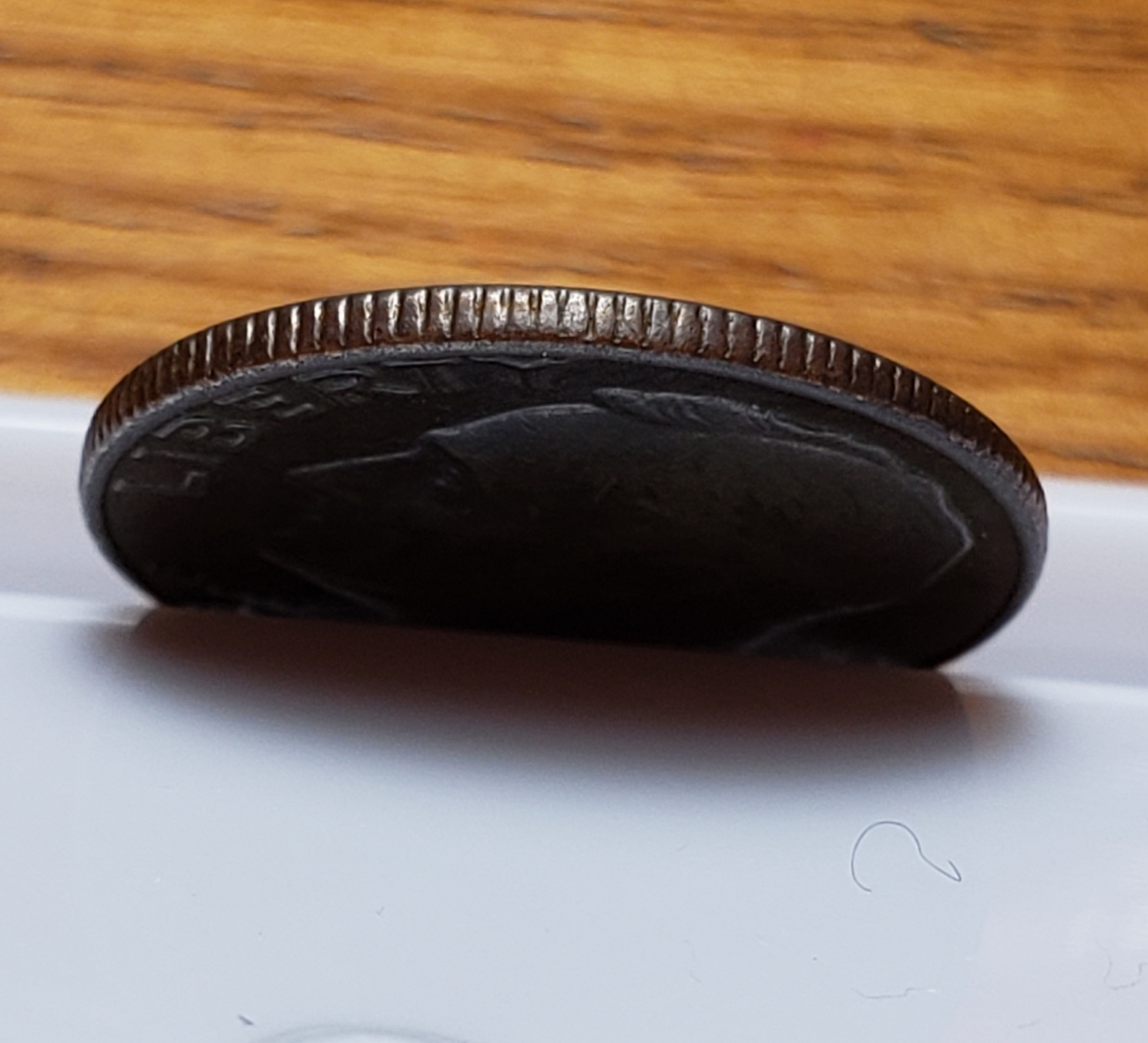 The reeding on an improperly annealed coin will look like a normally minted coin. The edge of an environmentally damaged coin will have a dark color like the surfaces Don't fall into the bad habit of saying "I've never seen anything like it or I can't explain how it was damaged, so it must be an error." The minting process is well documented and understood so there are only so many ways an error can occur. But there are countless ways to damage a coin.