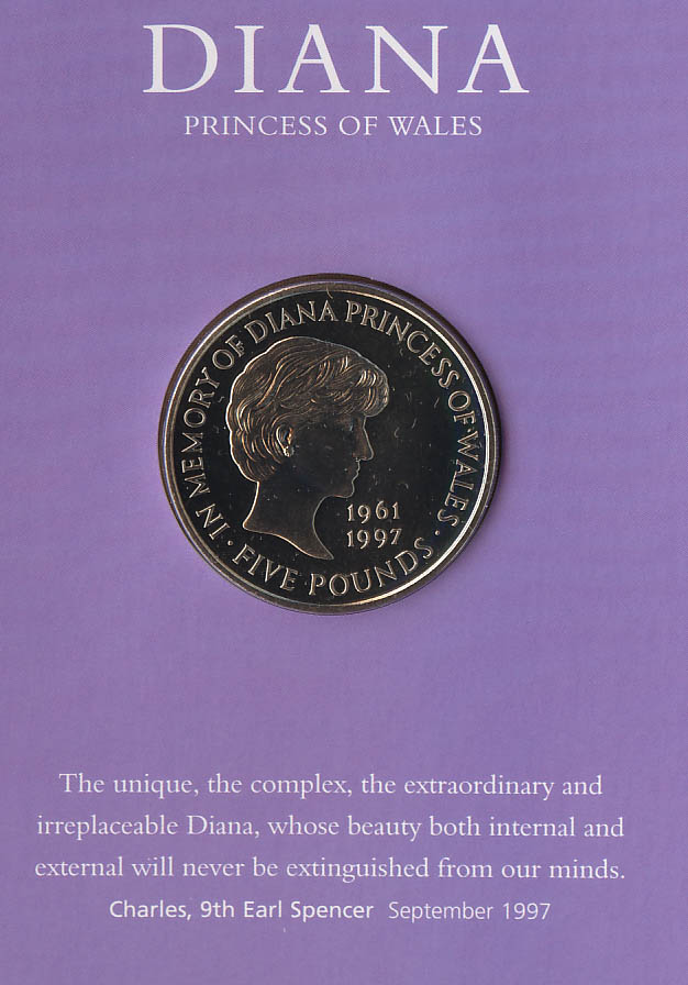 I have several coins depecting events in the life of Princess Diana. They came as a collectors set of $ 5.00 each coin from Liberia. I realize they are not worth much, but they are historical and honor her life and death. Here are a couple that may interest you. The reverse is the same for all these coins. Dave