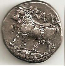 Bithynia, Kalchedon AR Siglos Bull circa 340-320 B.C. Diameter: 17 mm Weight: 5.31 grams Obverse: KALC (KALX) Kalchedon/Calchedon? ... Bull standing on grain ear Reverse: "mill sail" incuse Reference: SNG Cop 348 Other: Banker's mark on both sides Thrace Byzantion AR Hemidrachm circa 340-320 B.C. Diameter: 14 mm Weight: 2.48 grams Obverse: Cow standing left on dolphin Reverse: Incuse "mill sail" punch Reference: SNG BM 36-41