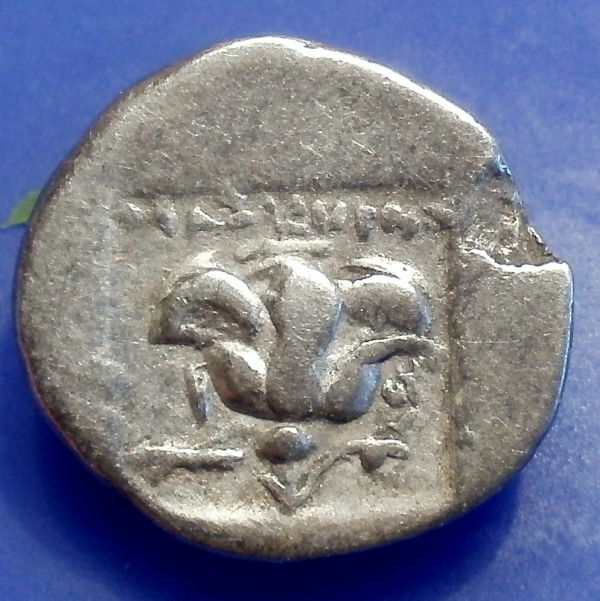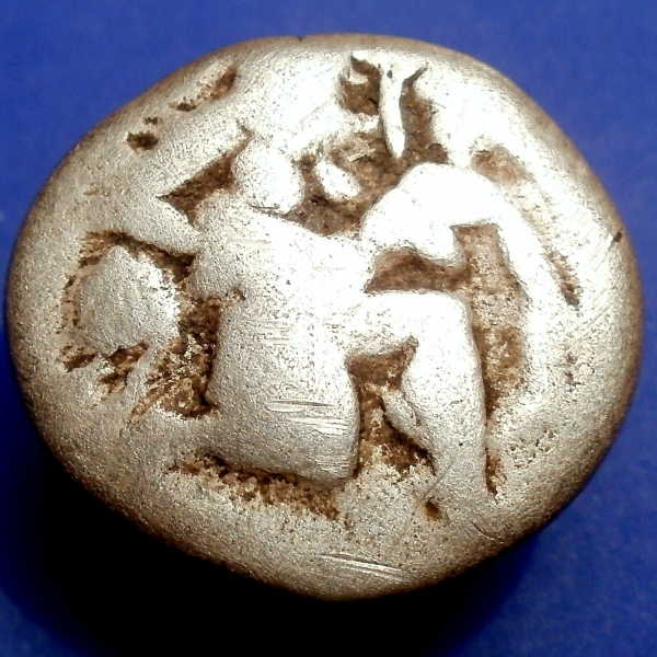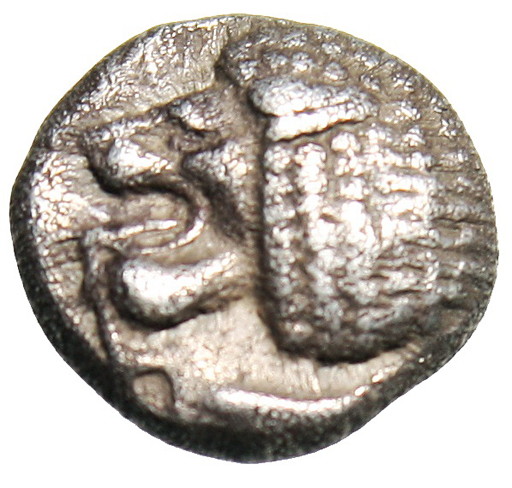 Persia AR Siglos Time of Xerxes II to Artaxerxes II 485-420 B.C. Diameter: 15.4 mm Weight: 5.3 grams Obverse: Persian hero holding bow and spear, X banker's mark in field Reverse: Incuse punch Caria, Kindya AR Tetrobol "Sea Monster" circa 510-480 B.C. Diameter: 12.6 mm Weight: 2 grams Obverse: Head of ketos sea monster (left) Reverse: Latticework pattern in incuse