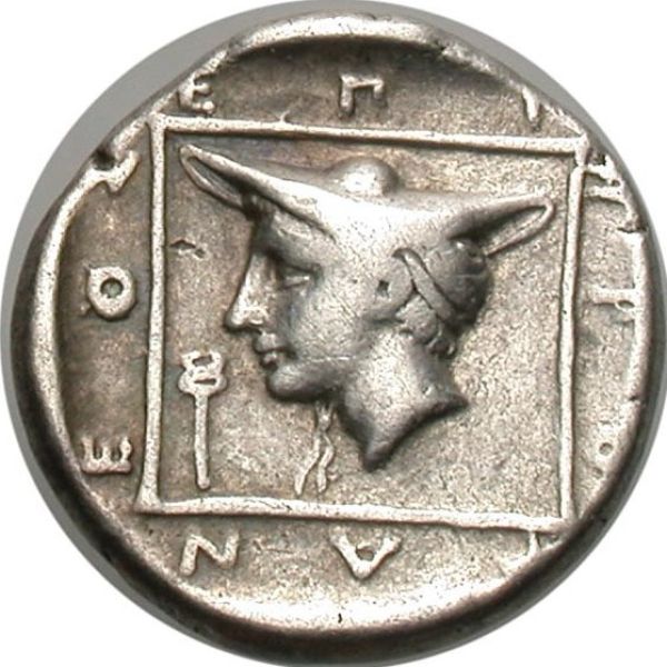 Thrace, Abdera Tetrobol May 279 c. 411-385 BC OBV: Griffin springing left REV: Magistrate's name around linear border, within which head of Hermes l., caduceus before; all in incuse square 2.780g CARION ISLANDS: RHODES AR Hemidrachm Sear 5065v c. 167-88 BC OBV: Radiate head of Helios 3/4 facing REV: Rose with magistrates name above, caduceous left all within uncuse square 1.6g; 12mm