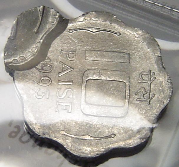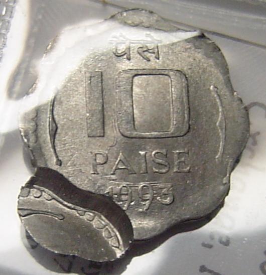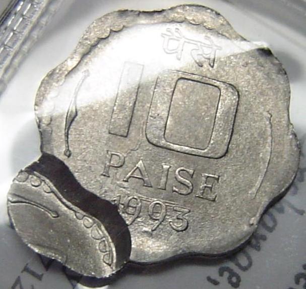 1993 India 10 Paise Error coin Also, I won this 1993 India 10 Paise Error coin on their 'Bid Board' for a couple dollars. I think it's pretty interesting. It was sold as being 'double struck' .... is it? is that what type of error this is?