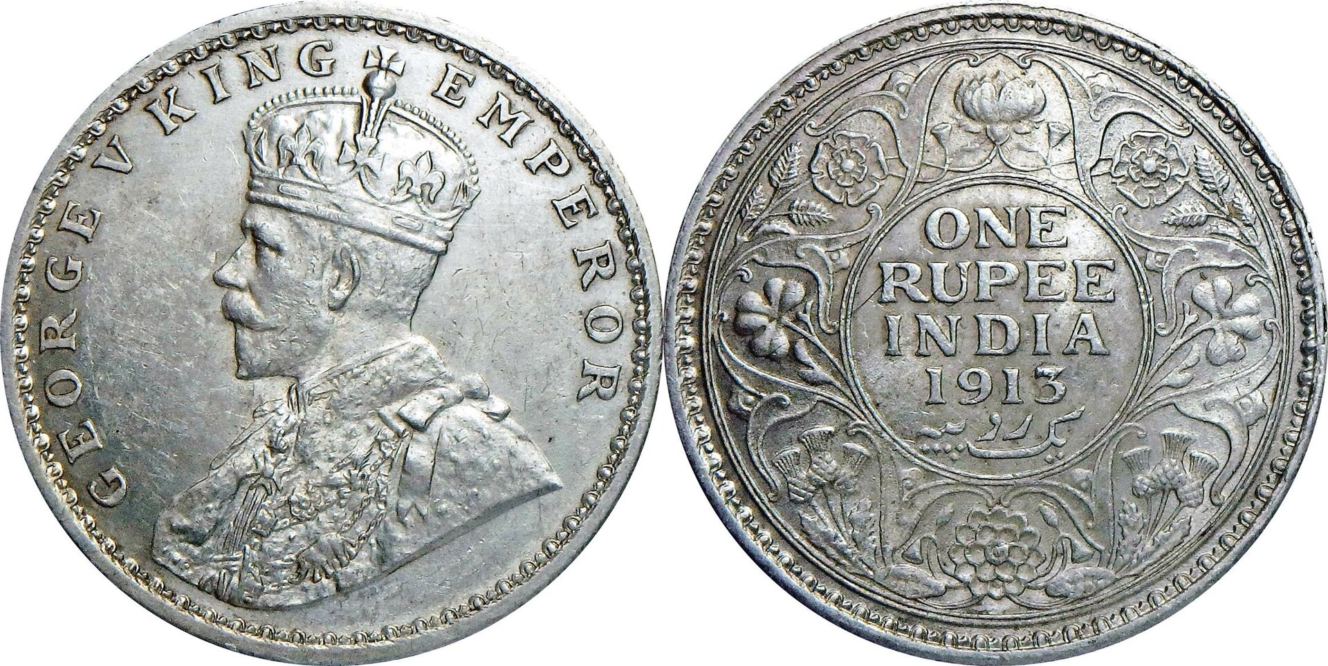 Perhaps this is a "pig rupee" as mentioned earlier. You can clearly see the elephant on the obverse at around 6 O'clock position on King George's jacket. 1913 C Rupee