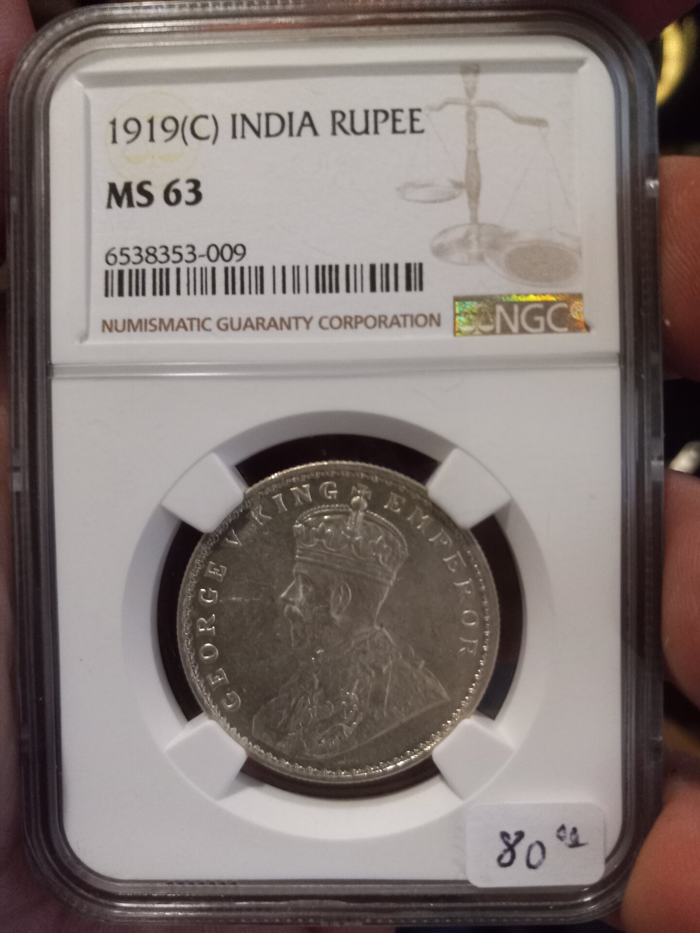 "1920 8 Anna - seems to be a lot scarcer than the books suggest" The 1919 and 1920 issues of 8 annas (from Bombay) have small mintage figures: 1.1 million and 1.3 million respectively