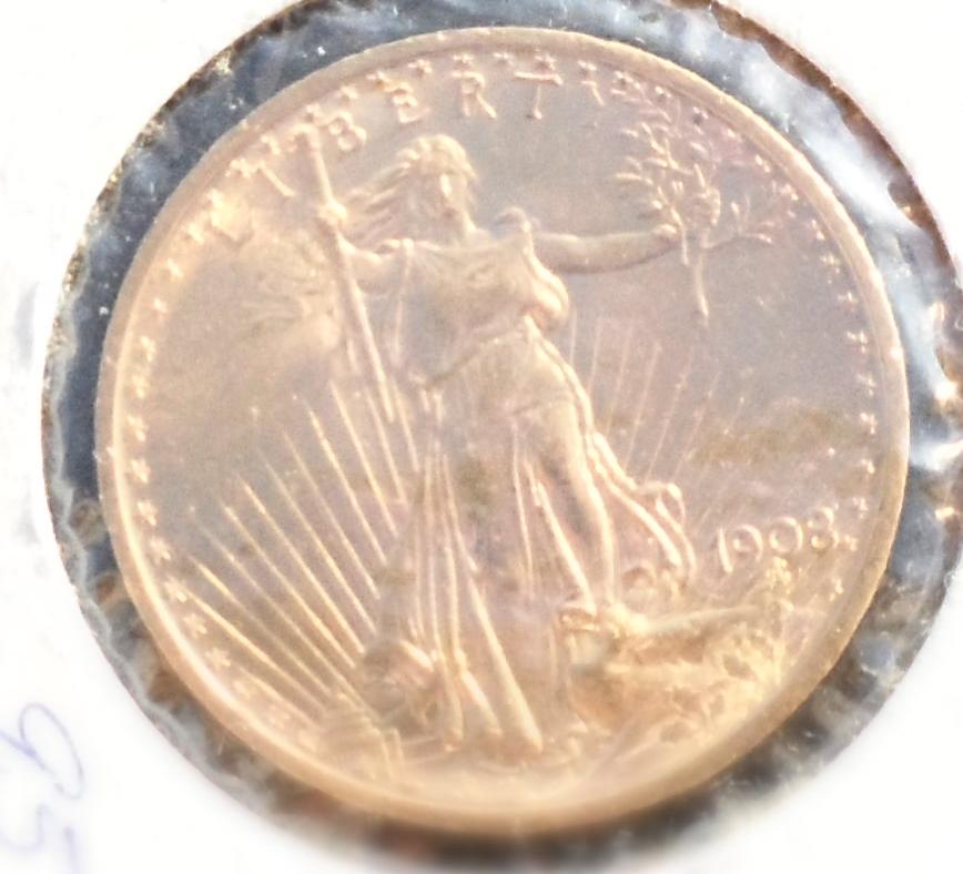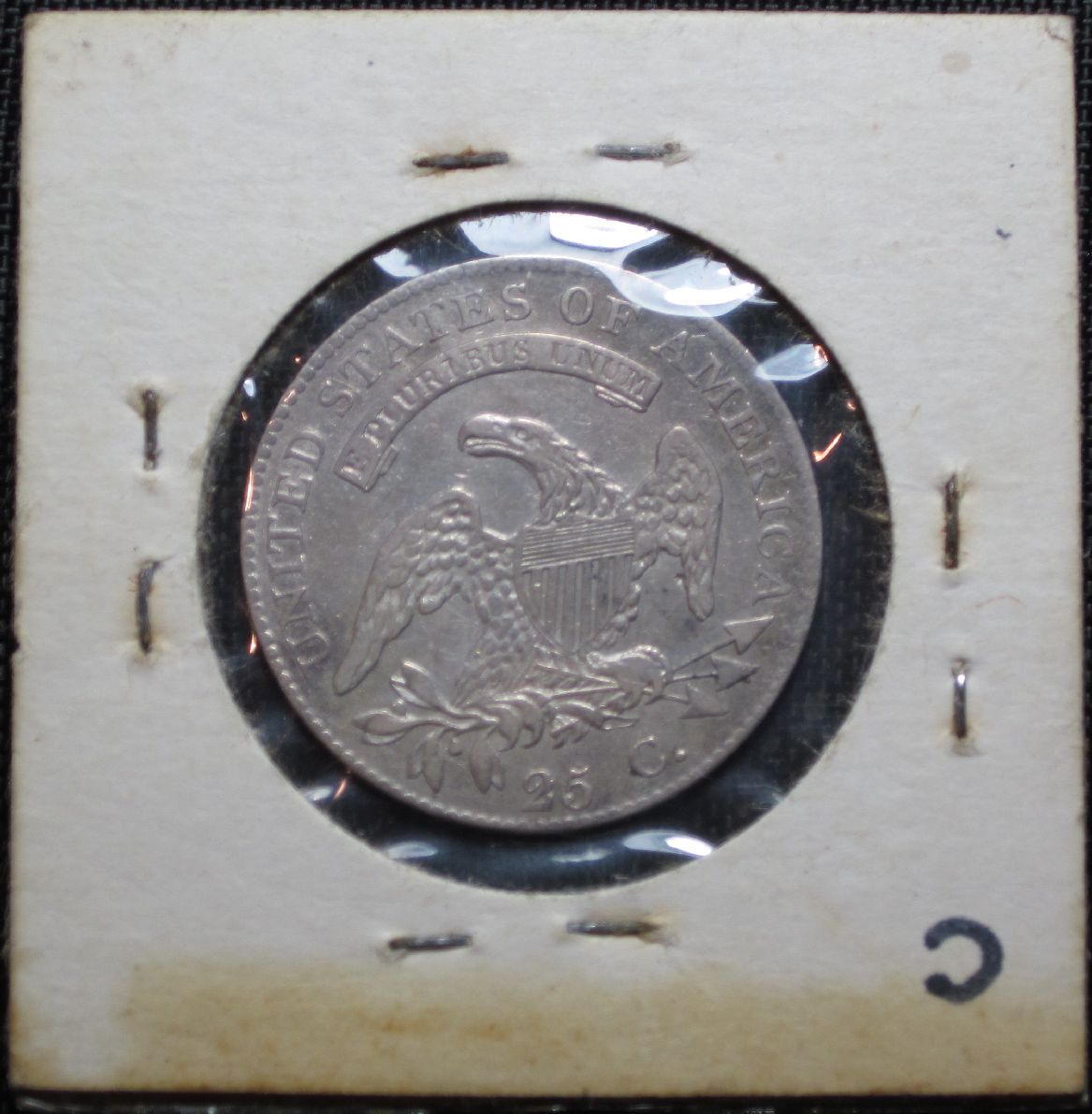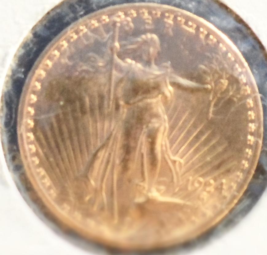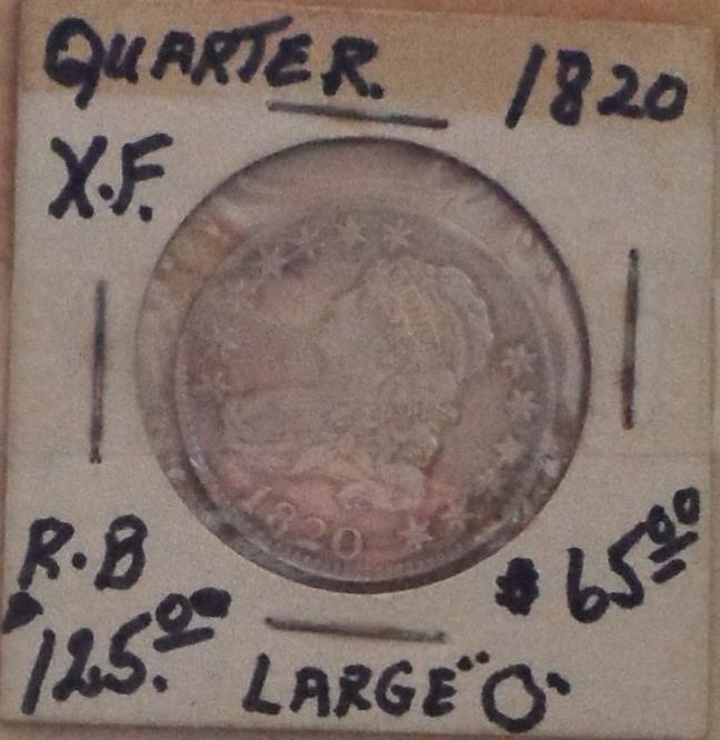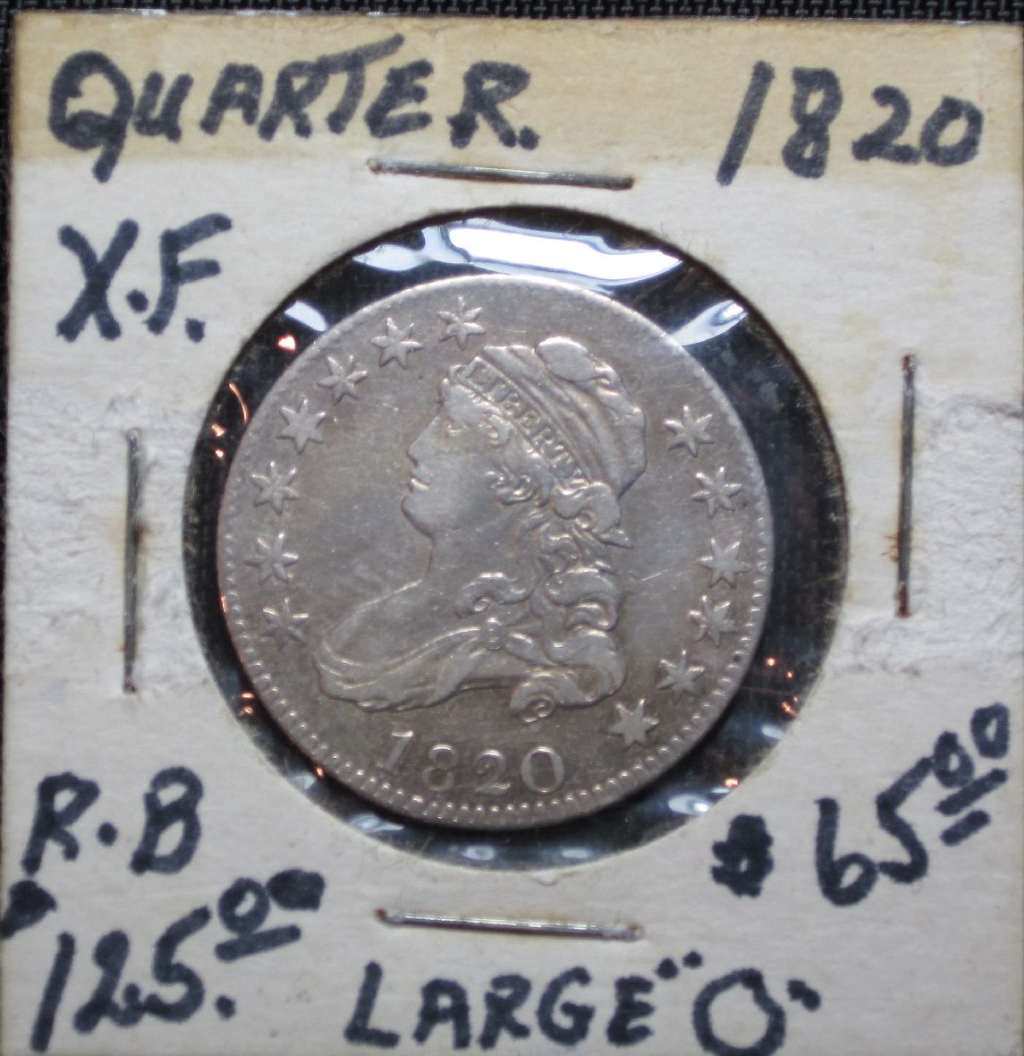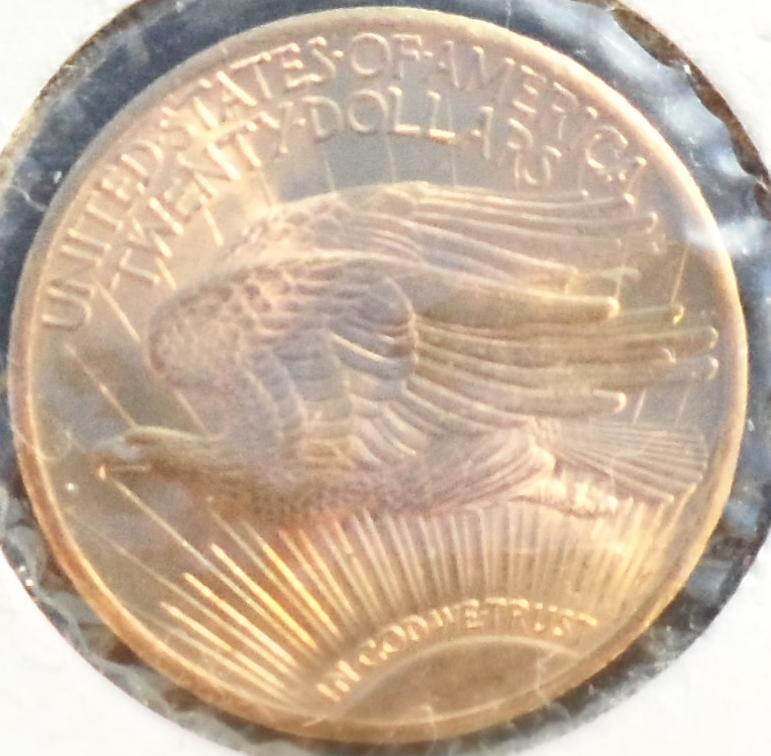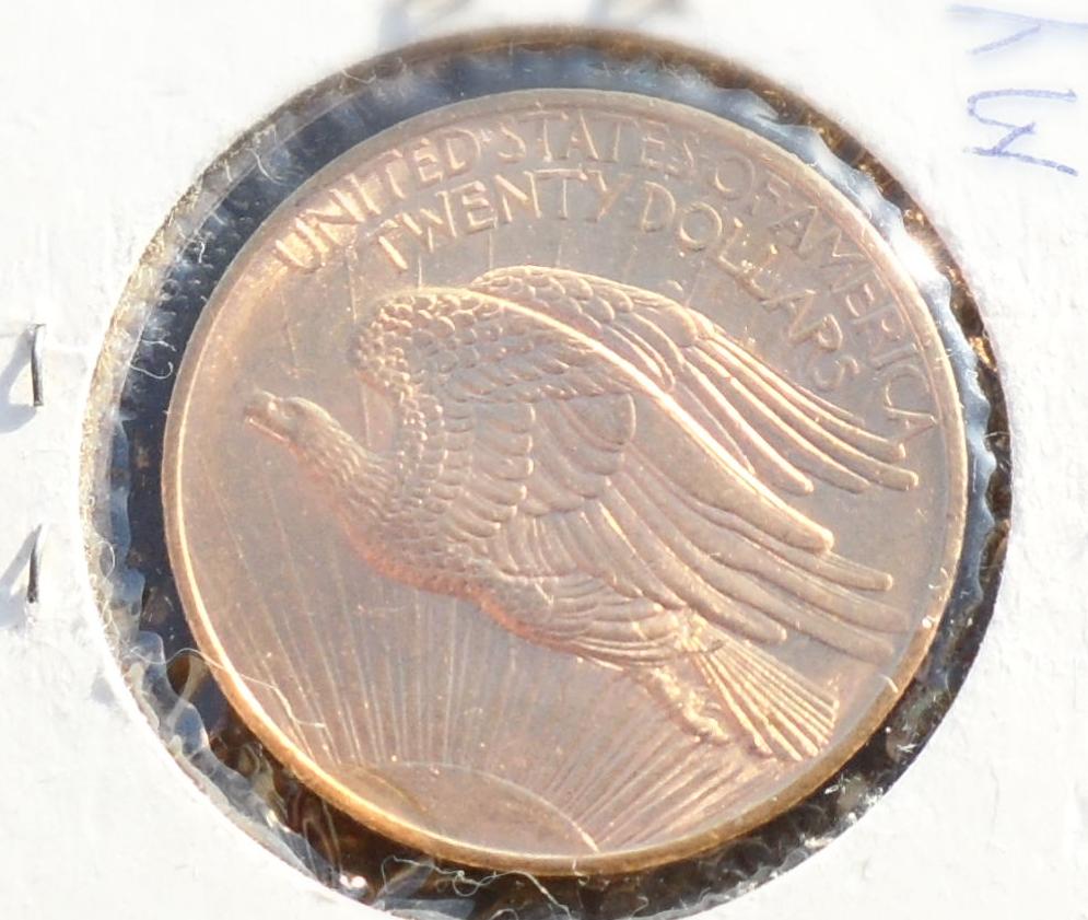 Hi guys, My grandfather was a coin collector. He passed away before I was born. My grandmother left me a bunch of coins when she passed away several years ago. I've recently gotten a hold of them from the safety deposit box....they do not have sentimental value to me, and I'd like to sell them. Tomorrow I am planning on visiting a coin dealer in the area and getting some input on what's valuable and what's not. I was thinking about submitting the really valuable stuff to PCGS or NGC to get graded and then sell on ebay....I figure I'll get more this way than by selling wholesale to the dealer. The less valuable stuff I'd be OK selling wholesale. Here are the coins that I think may be the most valuable that I'd be interested in this forums' feedback on. I have unfortunately NOT figured out how to take good coin pictures--most of the coins have much better detail than shown here. I have 4 Saint Gauden $20 coins, a 1908, a 1923, and two 1924s. I'm showing the 1908 and one of the 1924s here....the others appear to be similar quality to me. I've got an 1820 quarter that somebody (my grandfather?) has noted as XF which I assume means Extra Fine. I think this is quite valuable. I've got a few Morgan dollars (including one as representative) and some other coins that appear valuable as well based on research I've done. There's also what appears to me to be a misstruck penny....I have no idea if that has value or not.