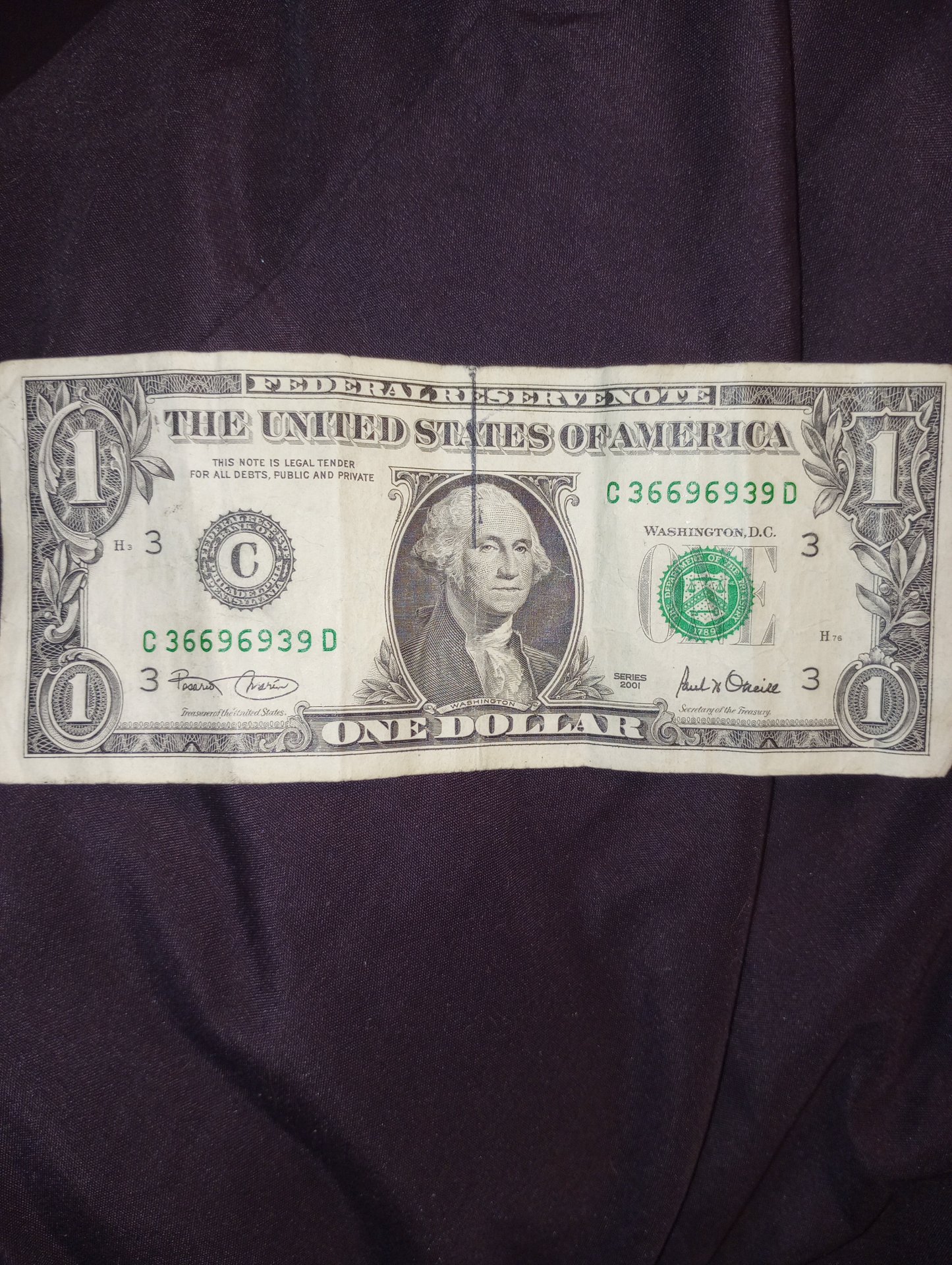 Looks like a black ink stamp from a rubber stamp? Try this Take two fresh bills, spray hairspray on one lay the other on top and clamp it together in a vice. The hairspray will cause the ink to separate and transfer...OH look and error bill Stick to coins.