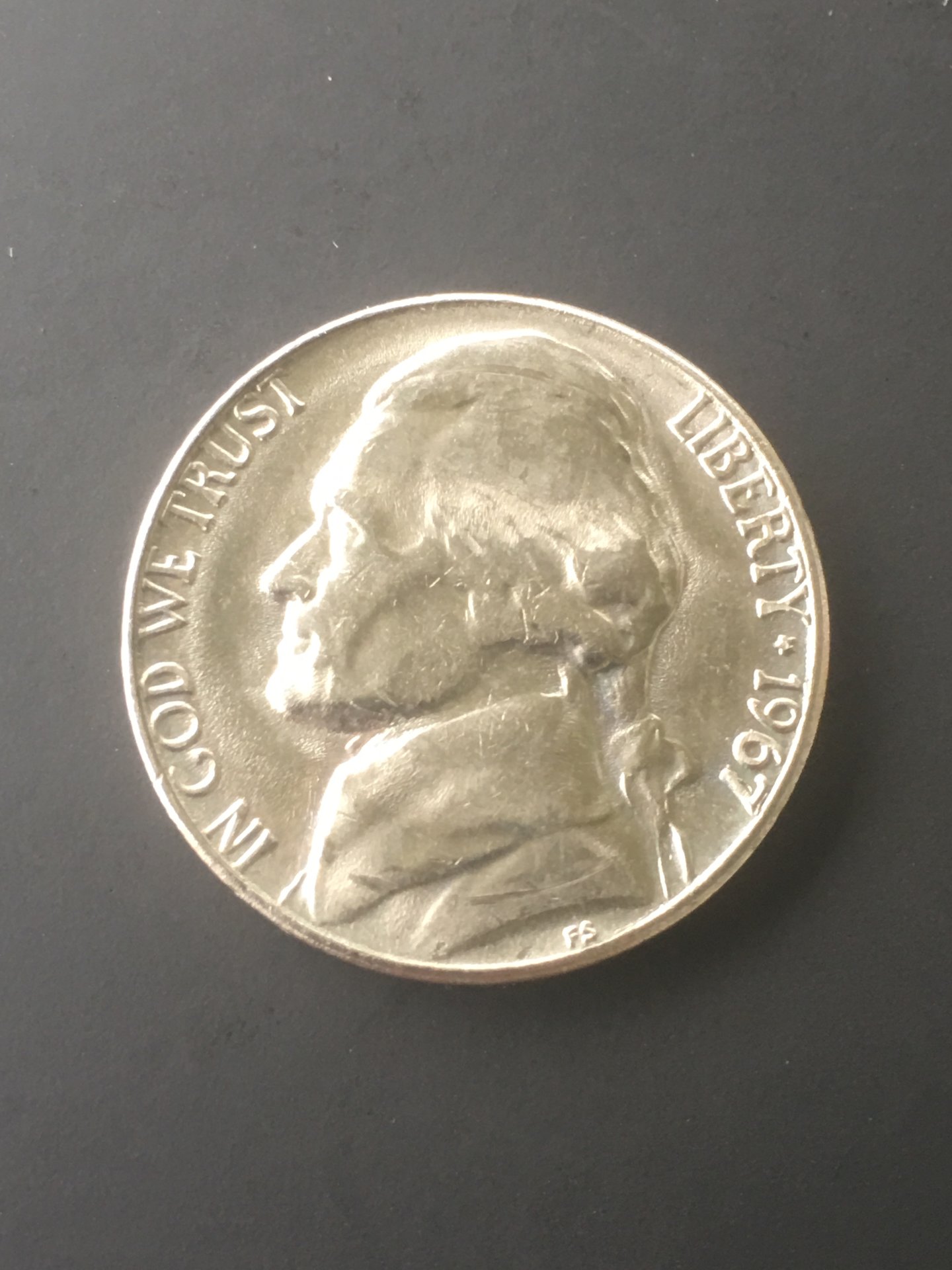 Wanted to share this 1967 Nickel I came across that I find quite interesting. Take a look at what appears to be teardrops on the second “T” in TRUST, Jefferson’s forehead and a possible “D” mintmark error over the O in MONTICELLO.