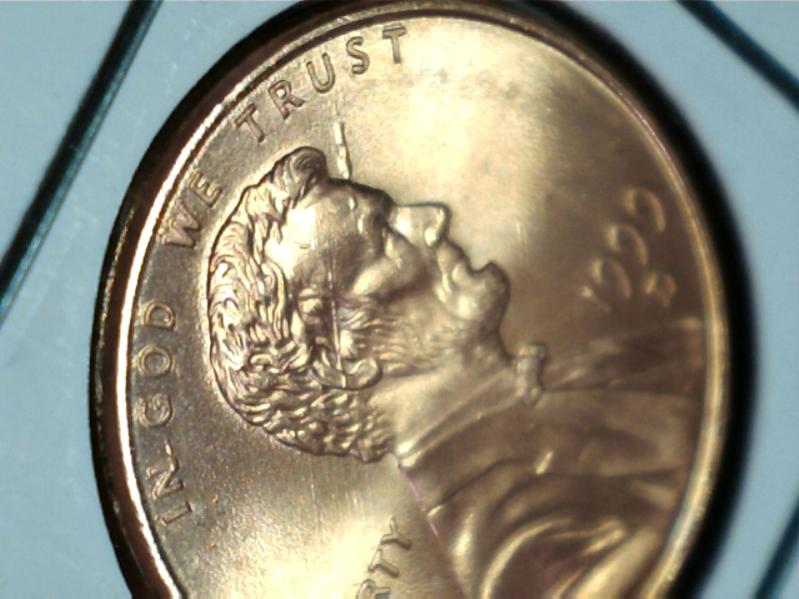 Just got my new, cheapo USB microscope Friday from China (of course), and decided to pull it out today and play a little. I remembered that I had recently found a 1999-D Lincoln that had some raised areas on it and thought I would share some of my first pics and get your opinions: I believe that this is a die gouge, but thought it interesting that the damage continues into Lincoln's forehead, with a secondary line that runs from temple straight through his ear. Has anyone seen this variety before and what would you say is the cause of this? Thanks everyone!