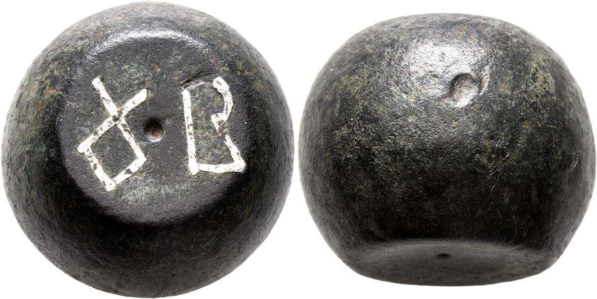 @Valentinian Are you familiar with Byzantine weights? Two of my Byzantine (or late Roman) weights use letters in monogram: L I for one Libra (pound) O U for ounce Have you seen this on coins?