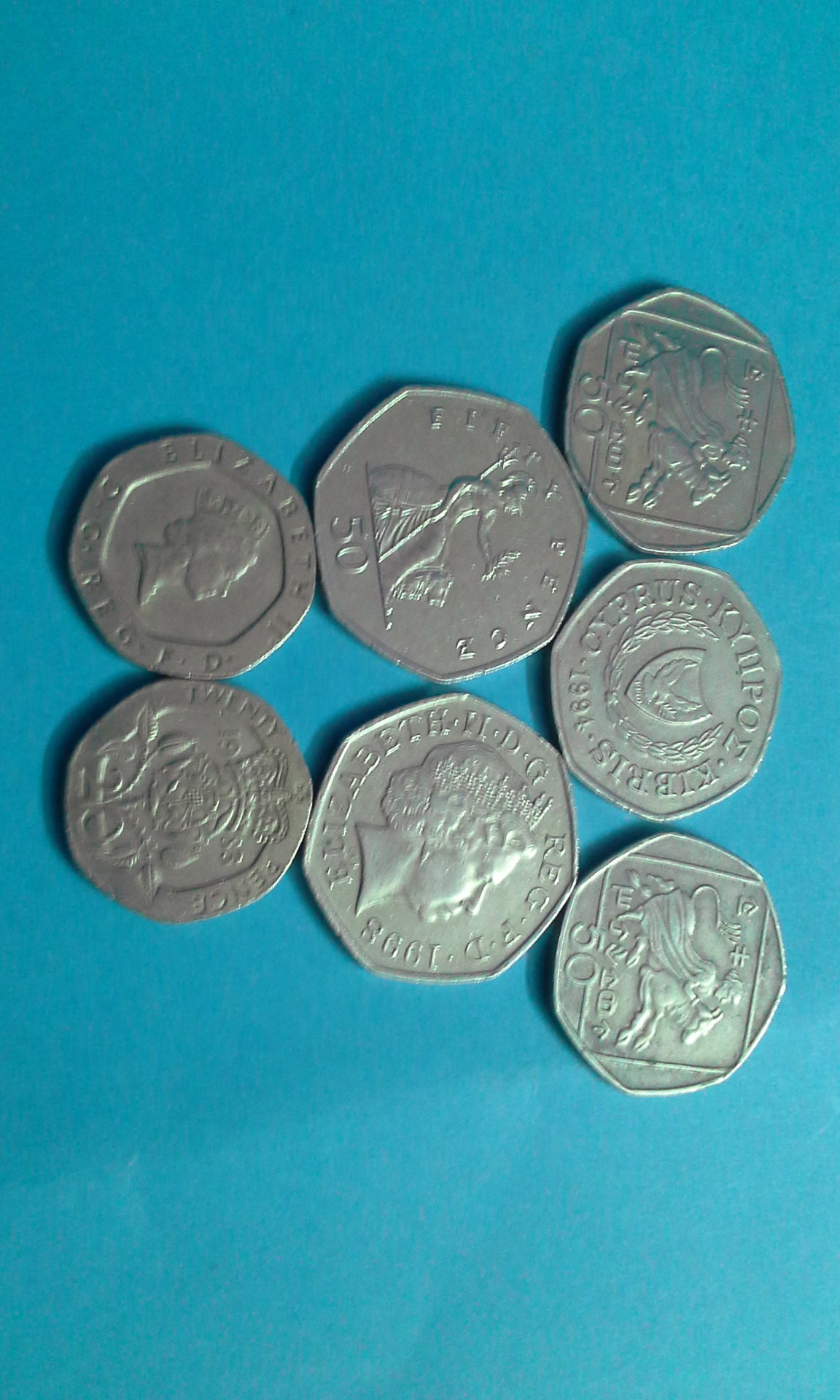 I only collected the 1928-69 predecimal denominations, but I must say those septagonal decimal 50p pieces are cool, and especially lovely as proofs. First time I've ever used "septagonal" in a sentence. My tablet's autocorrect feature had no idea what to make of it. Septagonal. Seven-sided, in other words. There, kiddies, is your vocabulary word for the day. Use it in conversation. Impress your friends. (Or make 'em give you eye-rolls and funny looks, anyway.)
