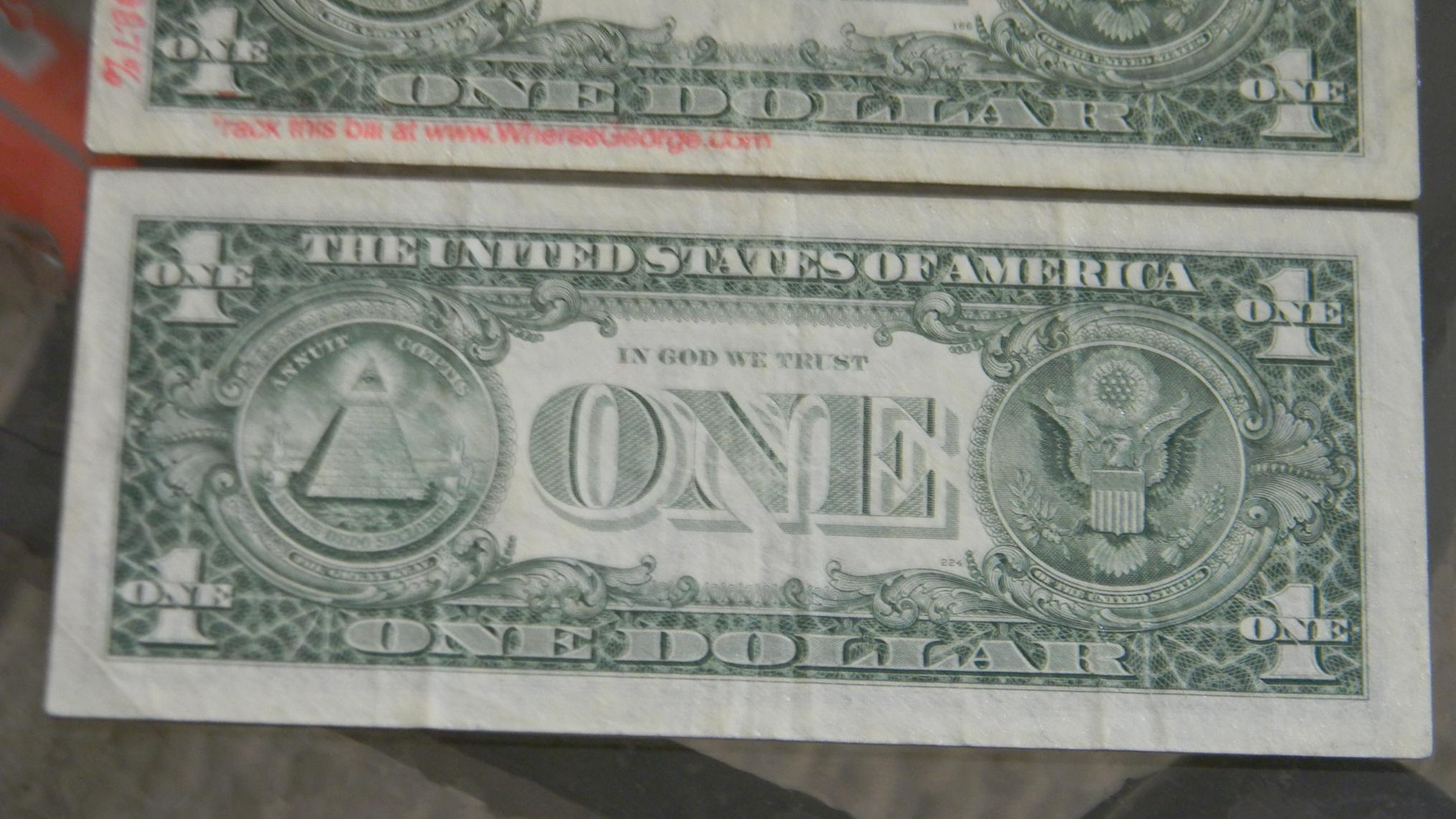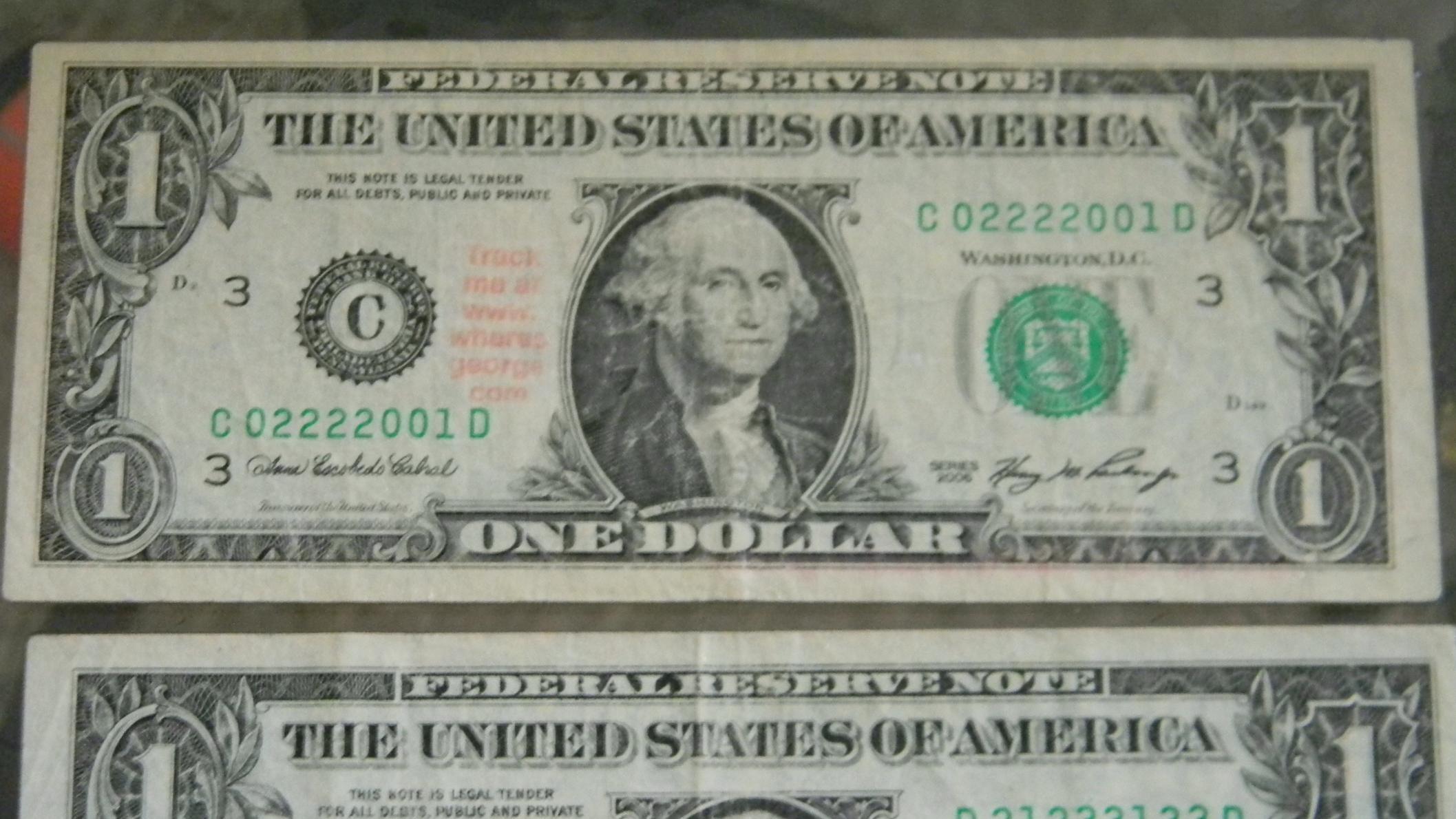 One or two numbers would probably command a premium, patterns would also. Both bills have three different digits so not a premium. I guess the "where's george" bill is a birthday note 2-22-2001 but with the stamp and condition it has likely lost any that it had.