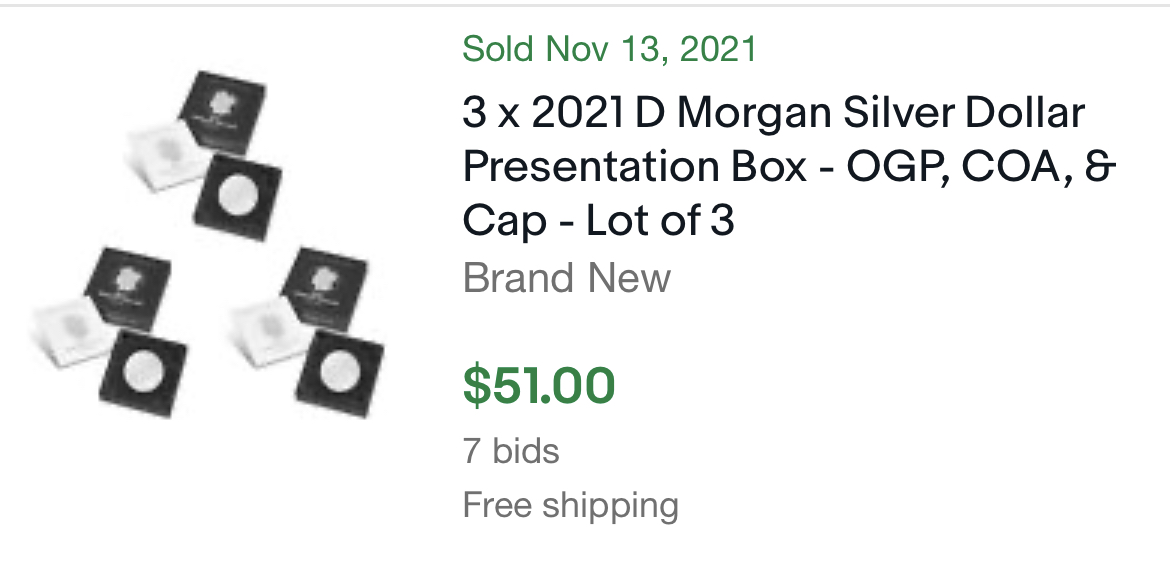 There certainly are people that buy it for legit reasons. That said there's definitely people that will crack low grades and use them to sell raw or the most nefarious part put counterfeits in them I have a hard time believing that sale given how prevalent this packaging is and the fact that the last time a lot of 3 boxes was offered it sold for 19. There's just no good reason someone would be paying almost 20 dollars each for a group of these boxes There's multiple bins of the same thing for less than half that price as well many of which are OBO from the same seller https://www.ebay.com/sch/i.html?_fr...=0&_osacat=0&_odkw=3+x+2021+morgan+dollar+box https://www.ebay.com/sch/i.html?_fr...6101c1c16225333&rt=nc&LH_Sold=1&LH_Complete=1