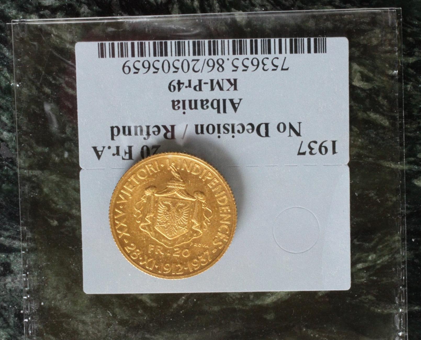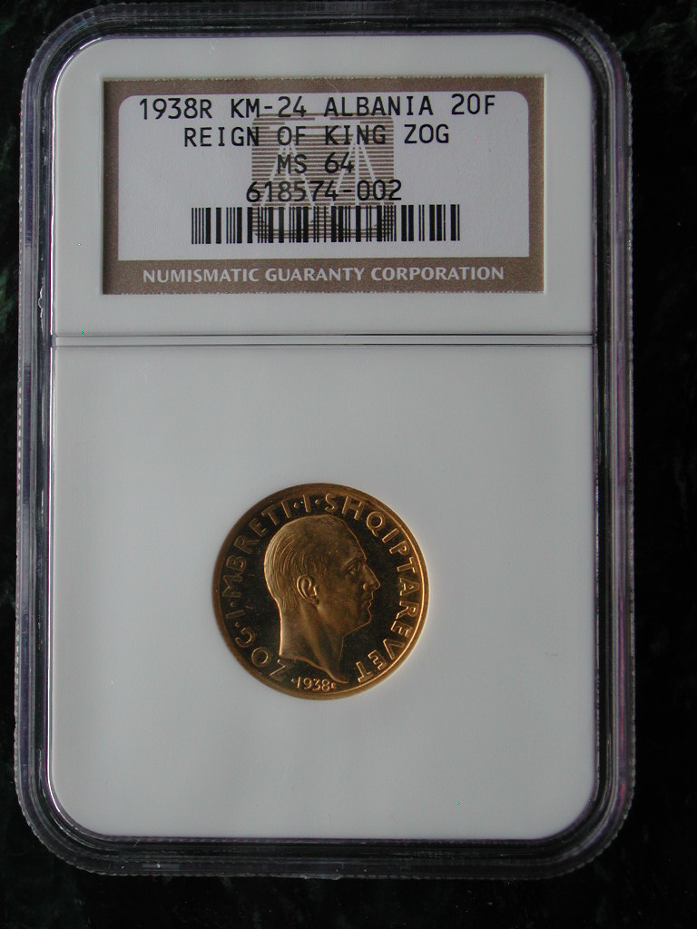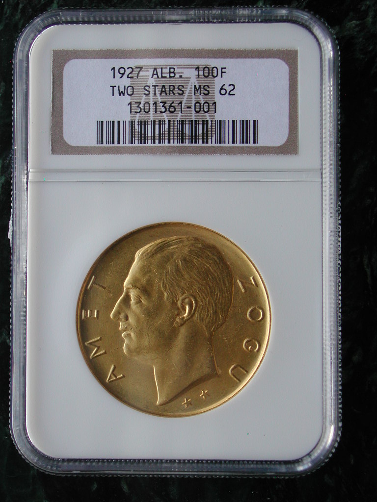 I can imagine you don't have the 5 Franga 1927 prova. I mean, who has? :smile I bet there are a lot of people though believing they do. There are plenty of replicas around that are often sold as if they were the real coin. I don't have all the gold from Zog yet. Especially commemorative Frangas are failing. But I also collect another country. So, as said. it goes very slowly. But I will some day. Minus 1 or 2 coins like the 20 Franga fasces which is nearly impossible to get. Just like the platinum 20 Franga 1926 Skanderbeg. I am not so sure the 20 franga 1926 Amet Zogu does not exist, as I have seen one once, on Ebay. Years ago. I then thought this very strange and did not dare to bid on it. Found it suspect. Later I regretted that. Based on that experience I believe it exists but I am not certain as I have never seen one again anywhere. I have few graded slabbed coins. I am from Europe and overhere we are rather reluctant to slab coins. We do the grading ourselves so to speak.