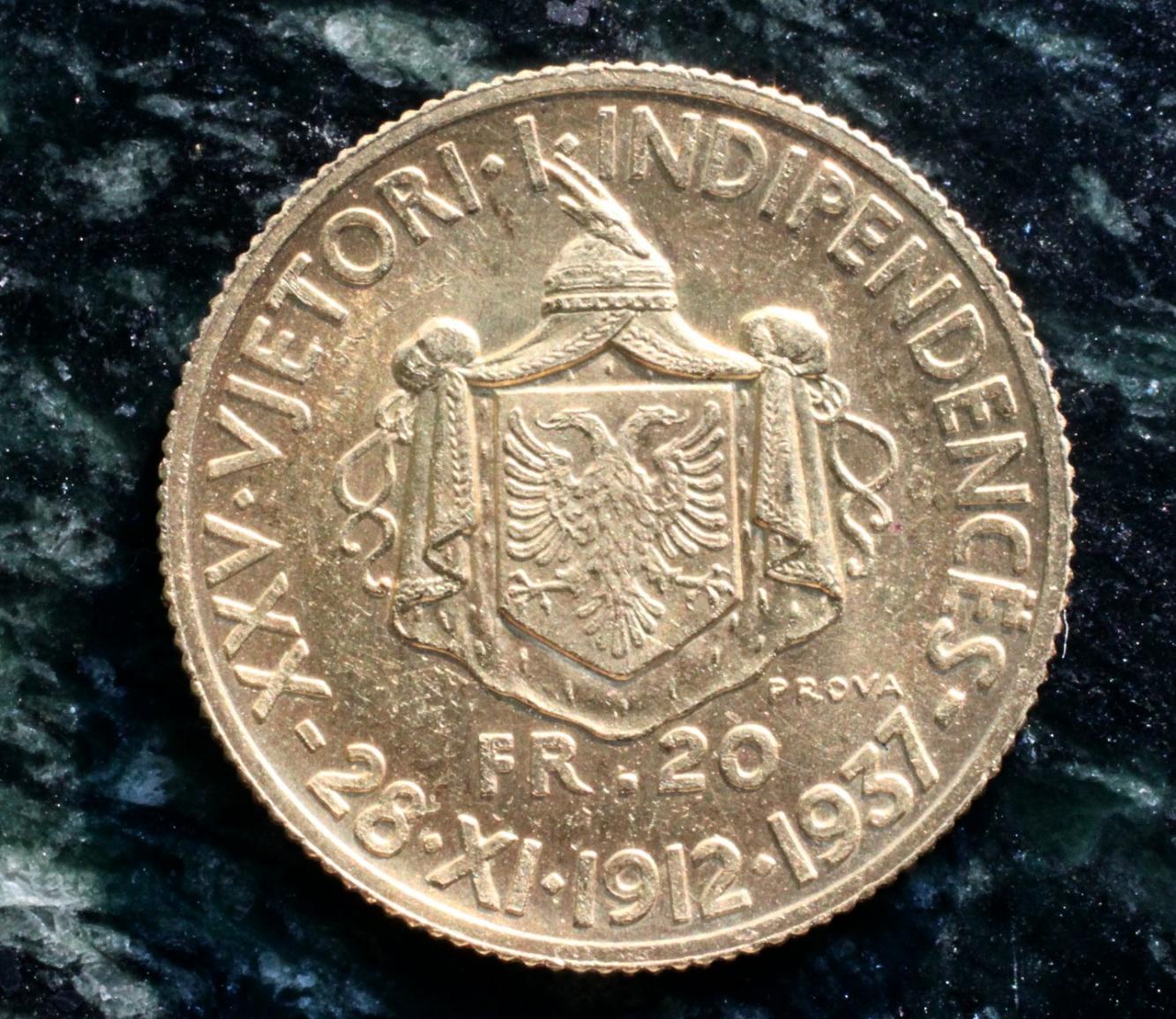 FInally someone posting some coins from my favorite country. I think its a fake. The R is to close to the bust of Zog. and the lettering seem out of position slightly. Also Im pretty sure provas were not made for the 37 20 franga variety. Nothing in my book of albanian coins lists or mentions it. http://coins.ha.com/c/item.zx?saleNo=244&lotNo=5071