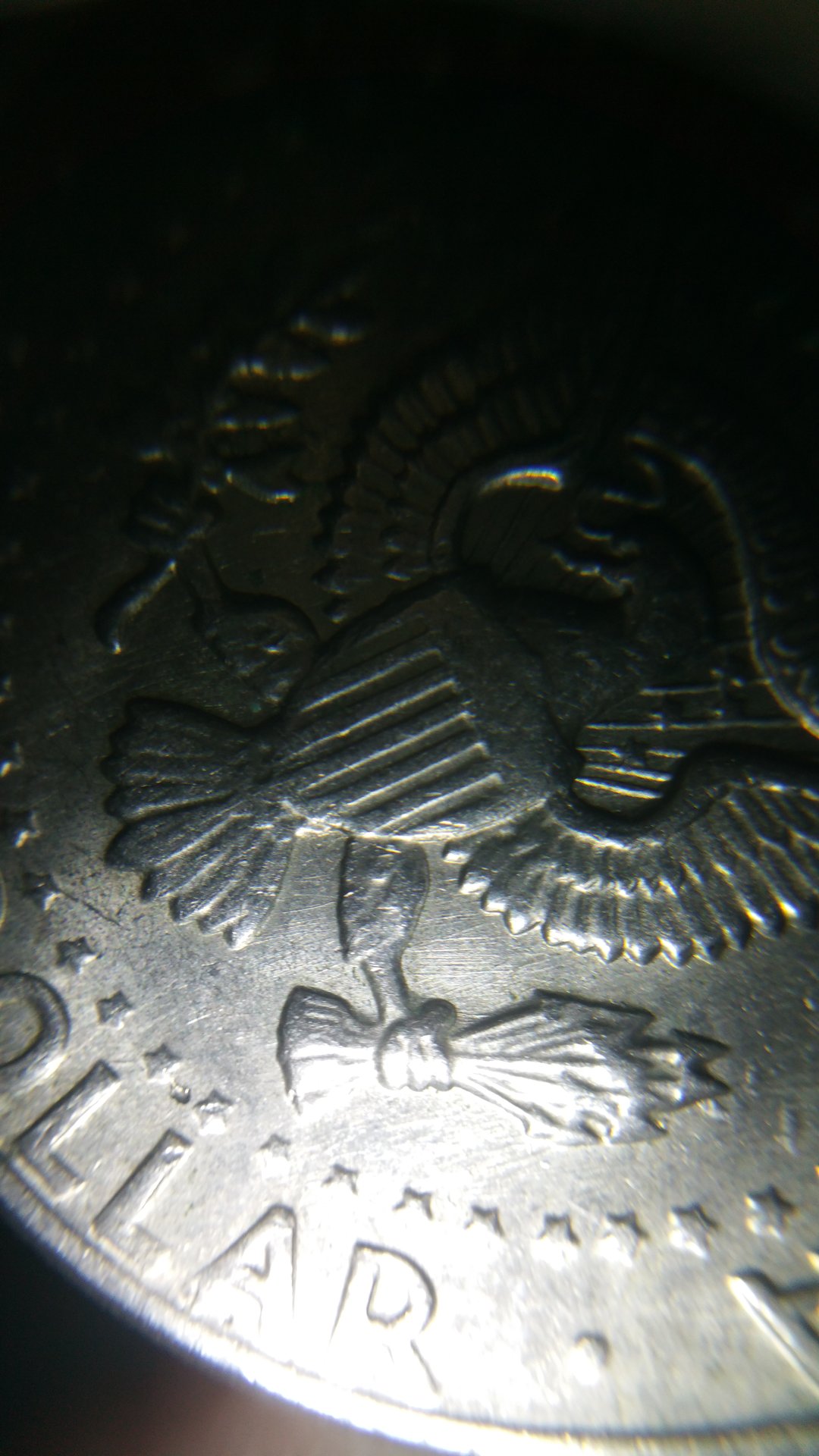 The die polishing does not appear to be in the area where the designer's initials should be. The area between the eagle's left leg (viewer's right) and the tail feathers is where the initials should have been, and it doesn't look to have been affected by die polish. I think this is a legitimate "No FG" Kennedy. Chris