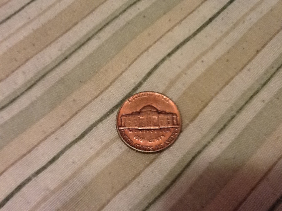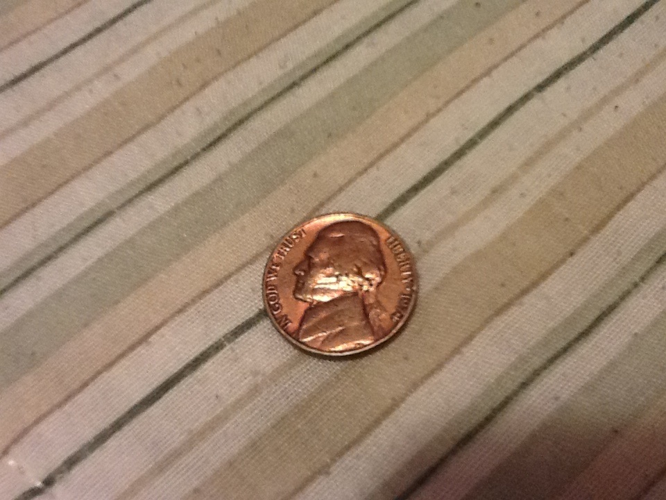 I found a nickel, but it doesn't look like an ordinary nickel. It's a 1974 P-Mint, but it has a completely copper look. I think before hand someone tried to scratch at it, and where they scratched it there is a silvery color. When I compare the sounds of it by dropping it, it makes the EXACT same sound as a penny. Any clue as to what I may have found?