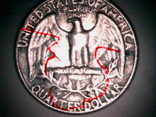 the scalloped design under on the bottom of the quarter is raised, and the design under the wingspan is also raised. this just might have to be sent in to verify. I'm working on better pics, and if I get any that seem significant, I'll post them. this is probably a stupid question, but have you all tried to magnify x200 orx400 ?