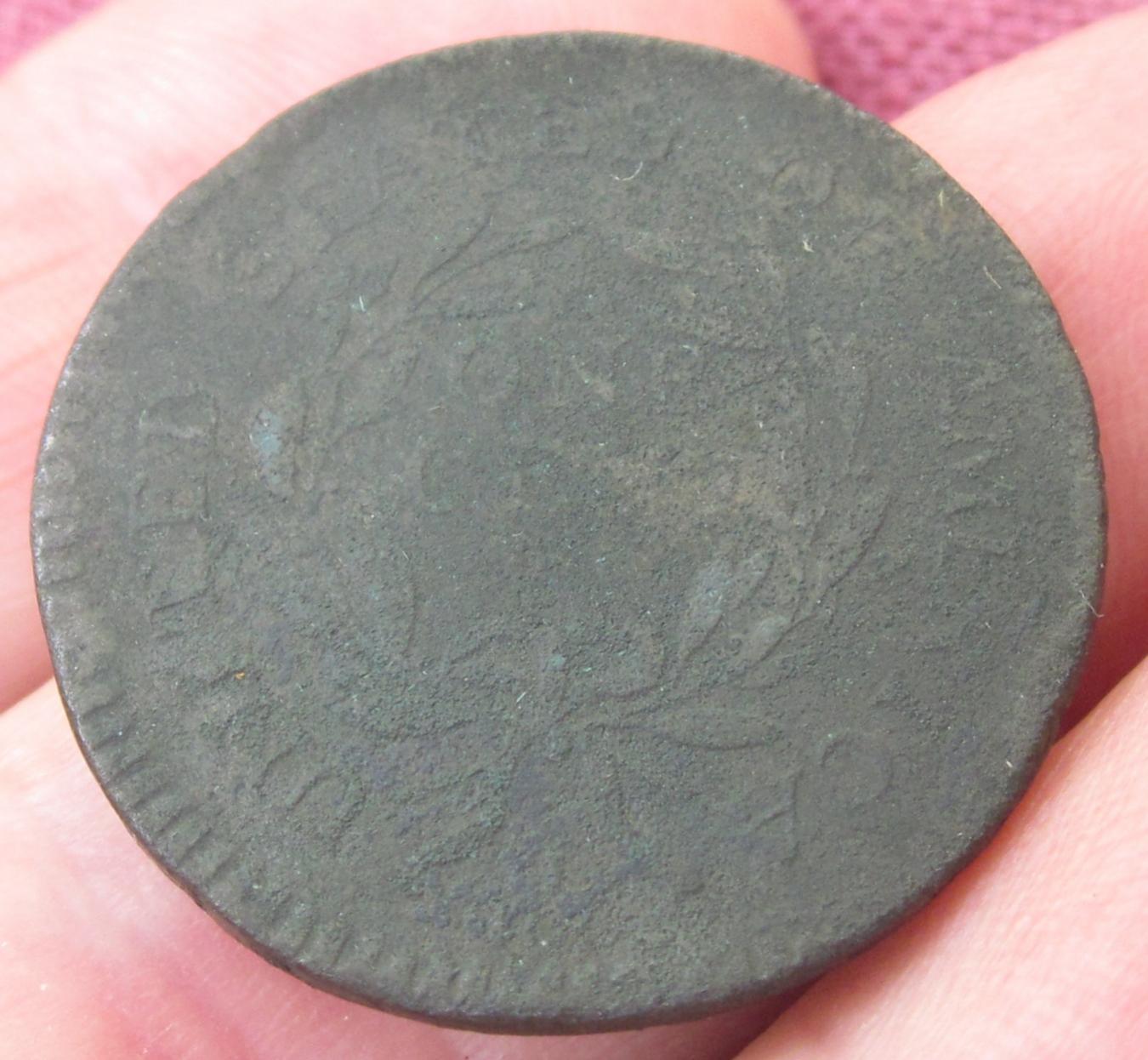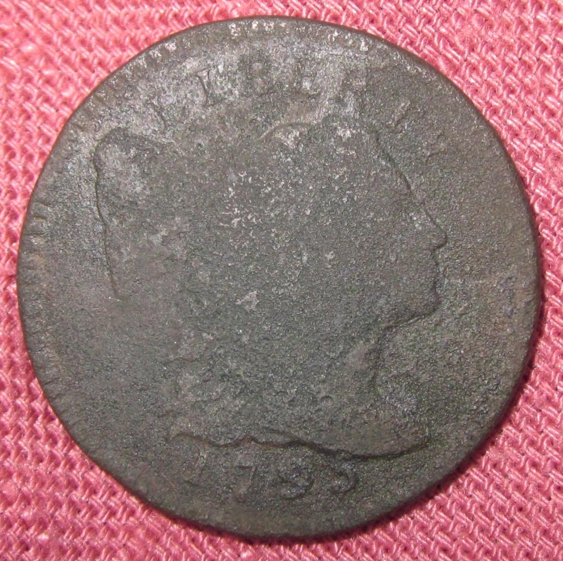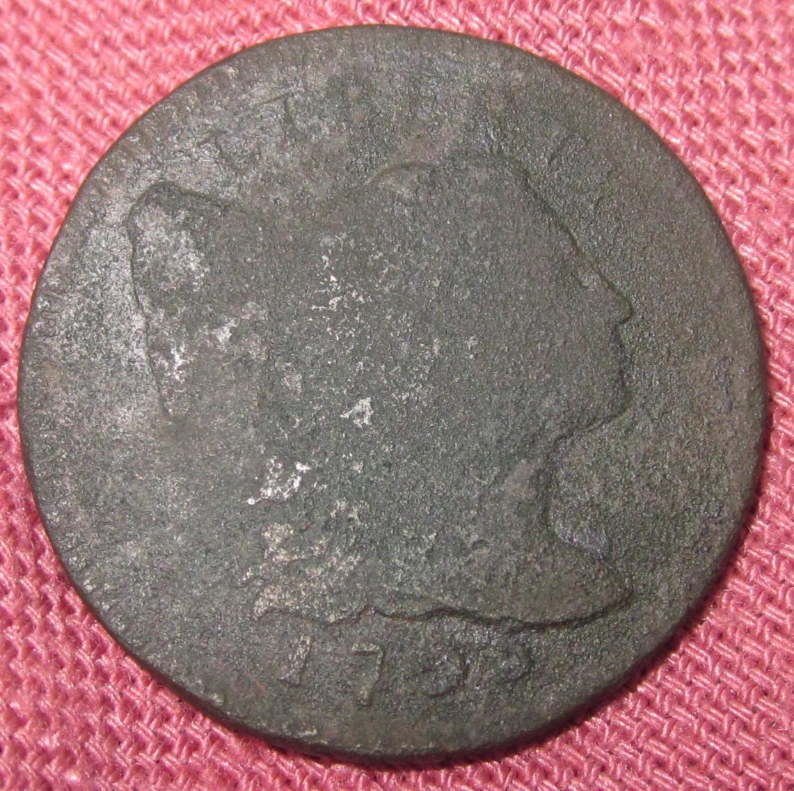 I am not a copper weenie but I may have found a really good coin. Can any of you identify this cent’s type & date? Of course, it is difficult to get the details to show well in a photograph. I’ll take several photos & maybe someone will find something to help with the identification. BTW, I also found a 1795 which is clearly identifiable. I’ll post the higher grade 1795 later.