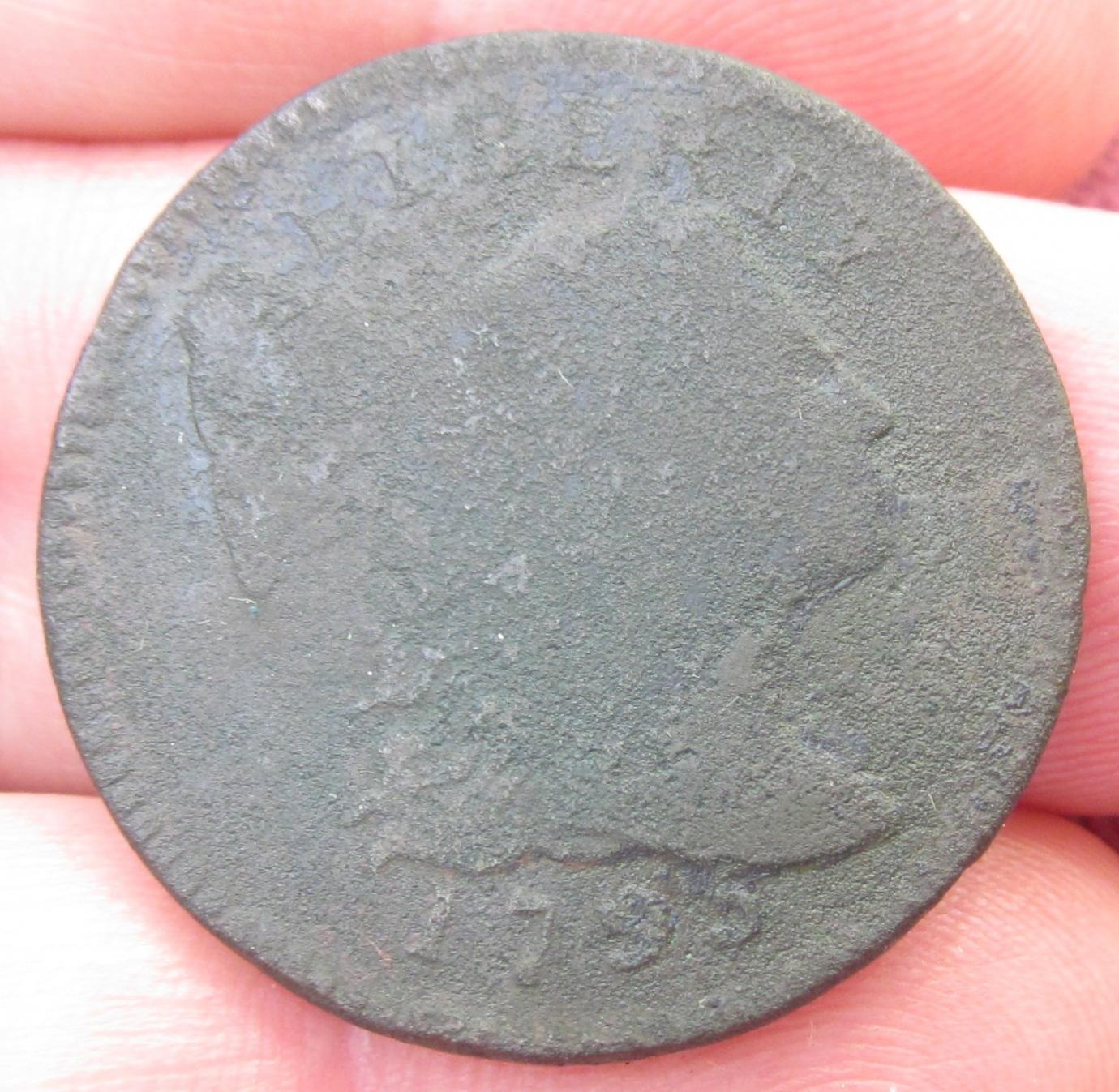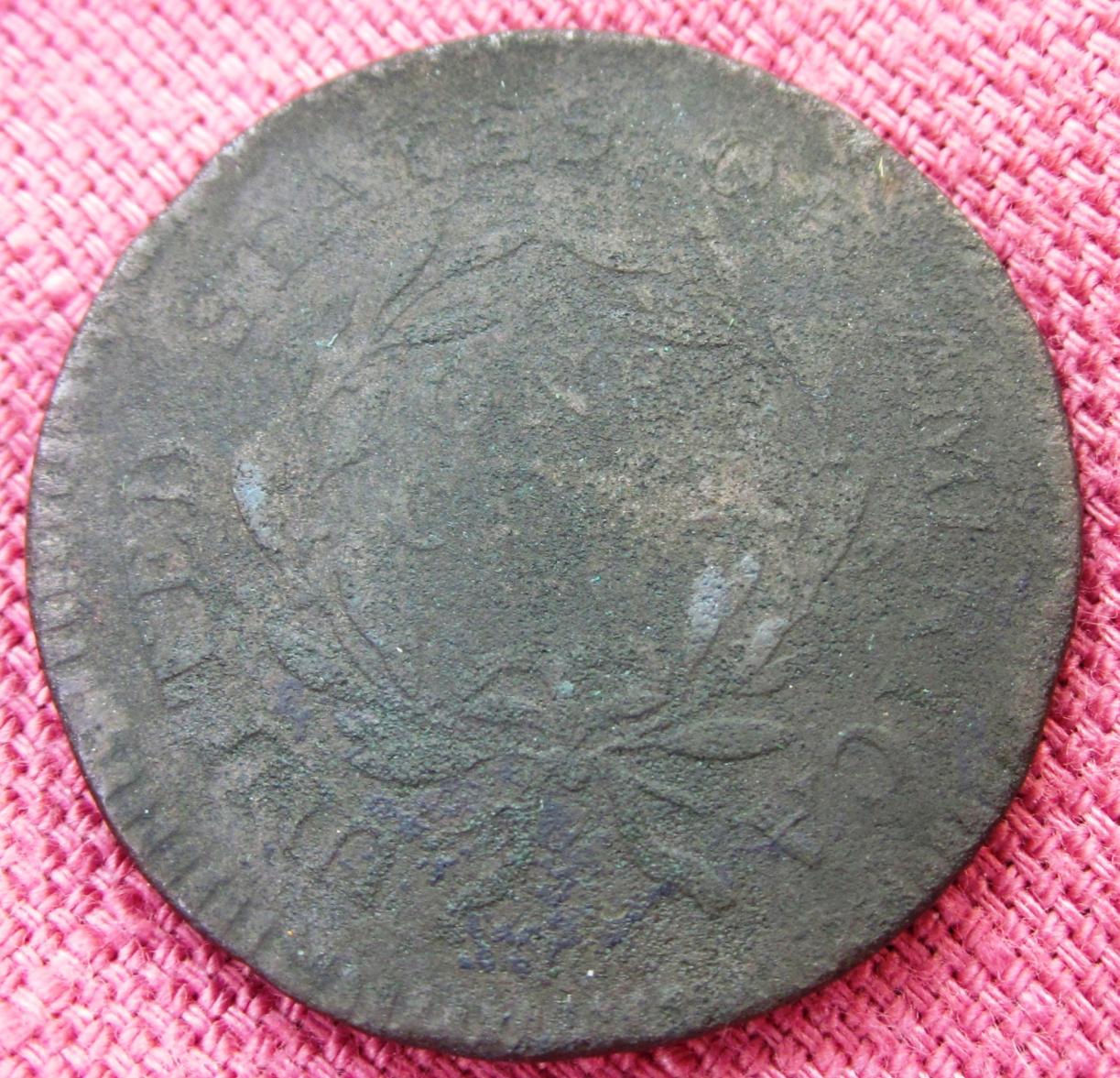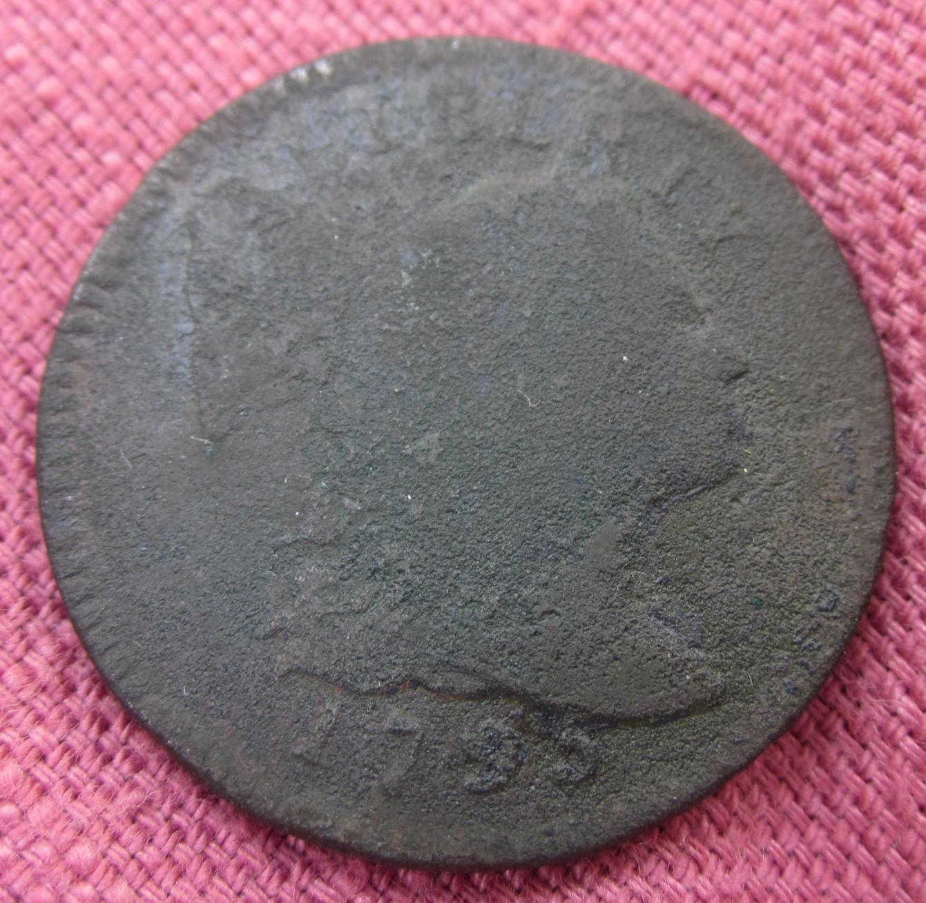 I am not a copper weenie but I may have found a really good coin. Can any of you identify this cent’s type & date? Of course, it is difficult to get the details to show well in a photograph. I’ll take several photos & maybe someone will find something to help with the identification. BTW, I also found a 1795 which is clearly identifiable. I’ll post the higher grade 1795 later.