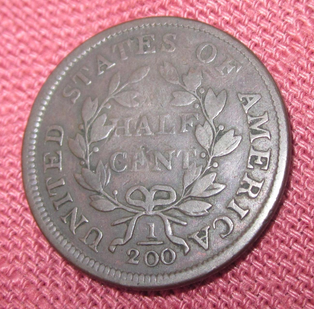 Thank you very much for the data. :thumb: I don't really have a place in my collection for this kind of coin so I'll probably sell it for the first reasonable offer at a future coin show. I did buy this half cent for my own collection (from a different dealer). Apparently I got a good deal on it. I paid $30 and I'm pretty sure that my sheet listed $65 in VG. :smile