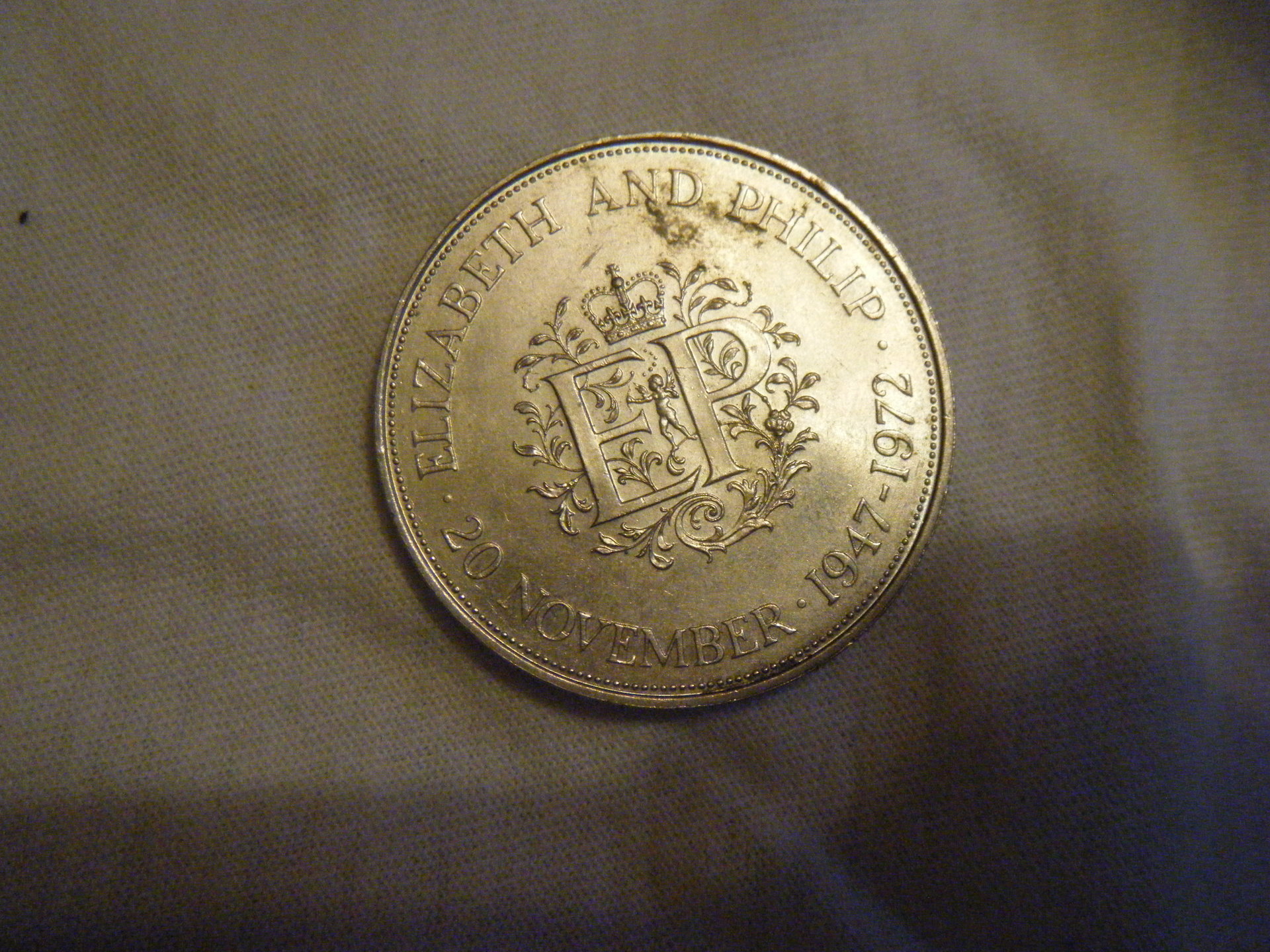 Oh and yes it is a commemorative coin, QEII & Phils silver wedding anniversary