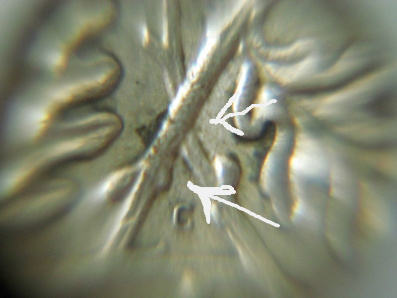 I just started going over my foreign coins and noticed this. it looks like doubling on two spots on the upper junction of the triangle around the mint mark. here is the '35 with the doubling: here is a '36(dont have another '35) without: