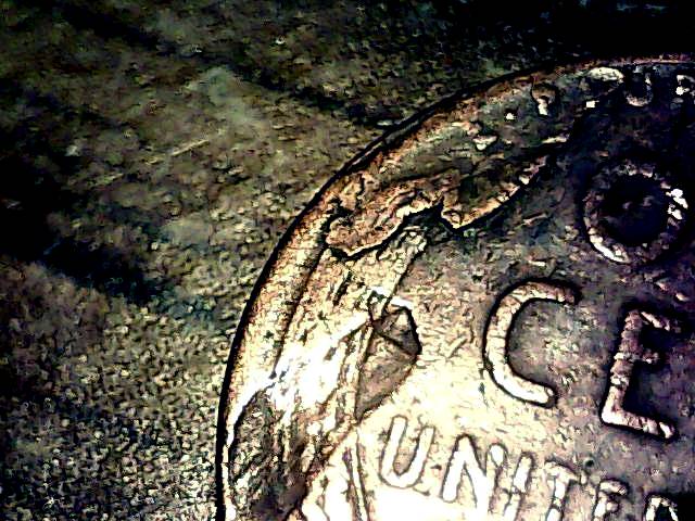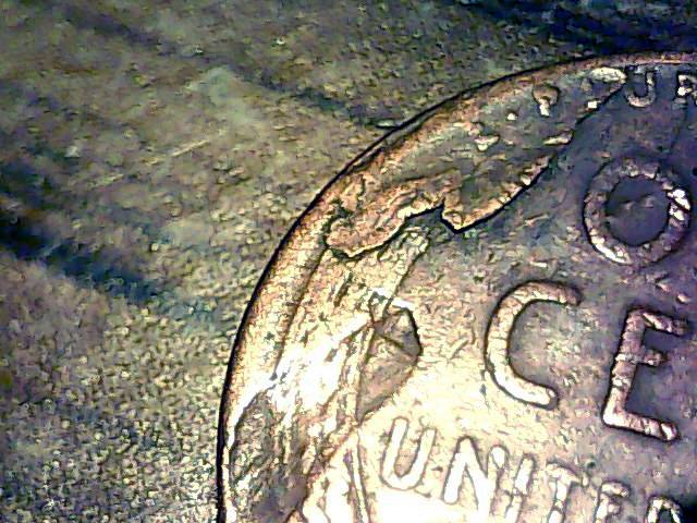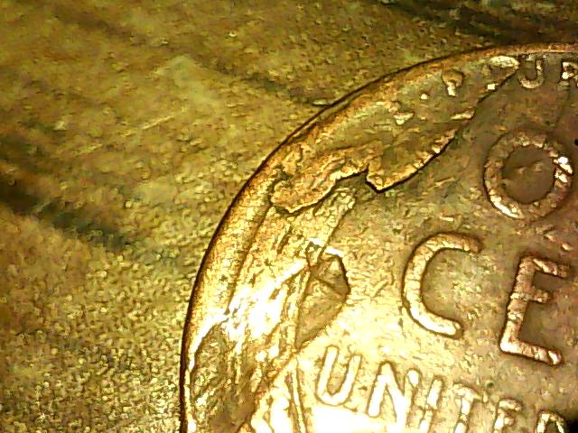 cool i actualy found a real error this time its one of many 1944 wheats i have 44 and 46 seem to be the most common date i can see the top part beign lamanation error but what about the indent/gauge it looks like it was pressed with the indent alredy there since you can see the wheat ears inside the indent grade should be in the middle of f -vf