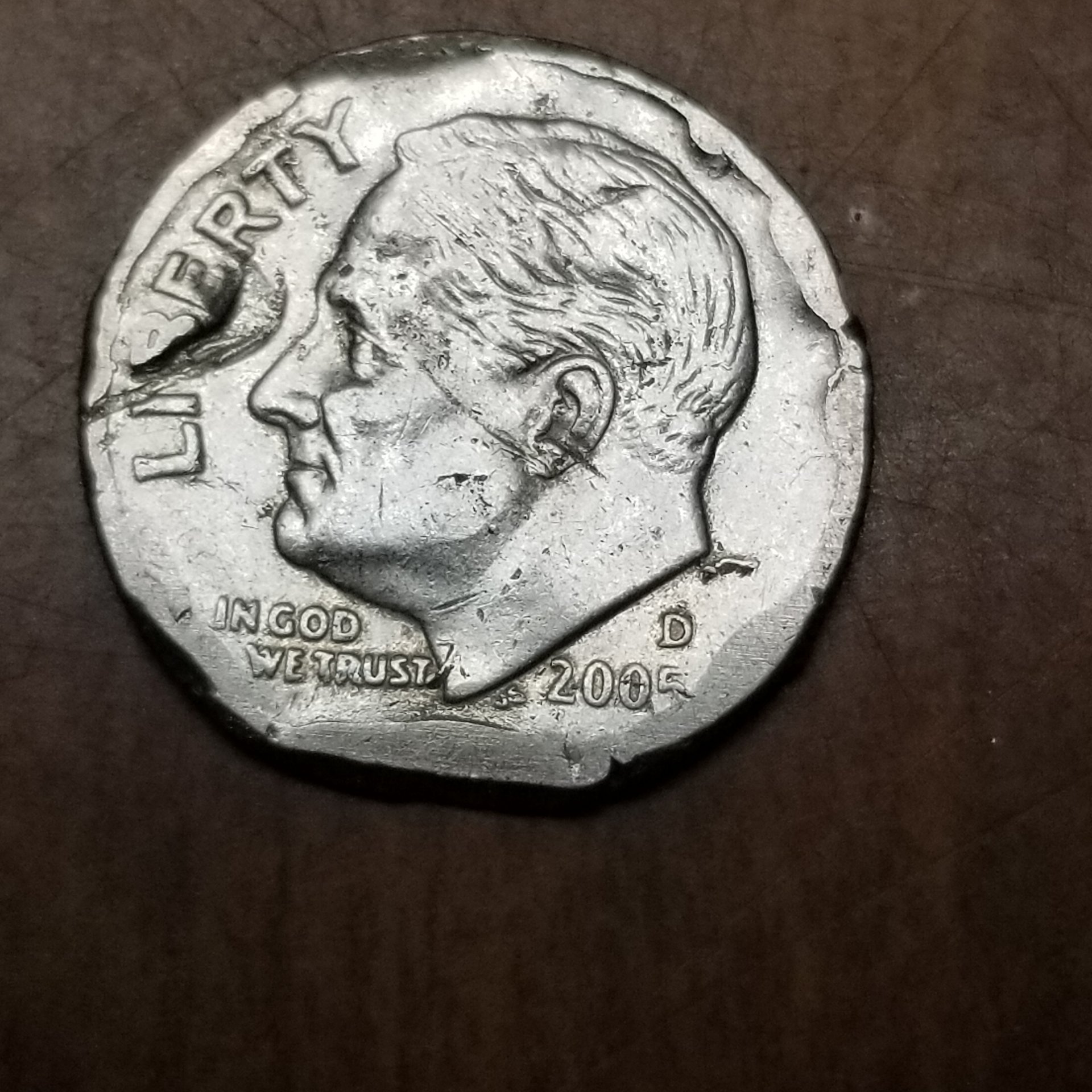 Welcome to the neighborhood @Pamela White ! Yes, it looks like someone unleashed their pent-up anger on this poor dime and then tossed it in the yard only to be run over a few times by the lawnmower. Chris