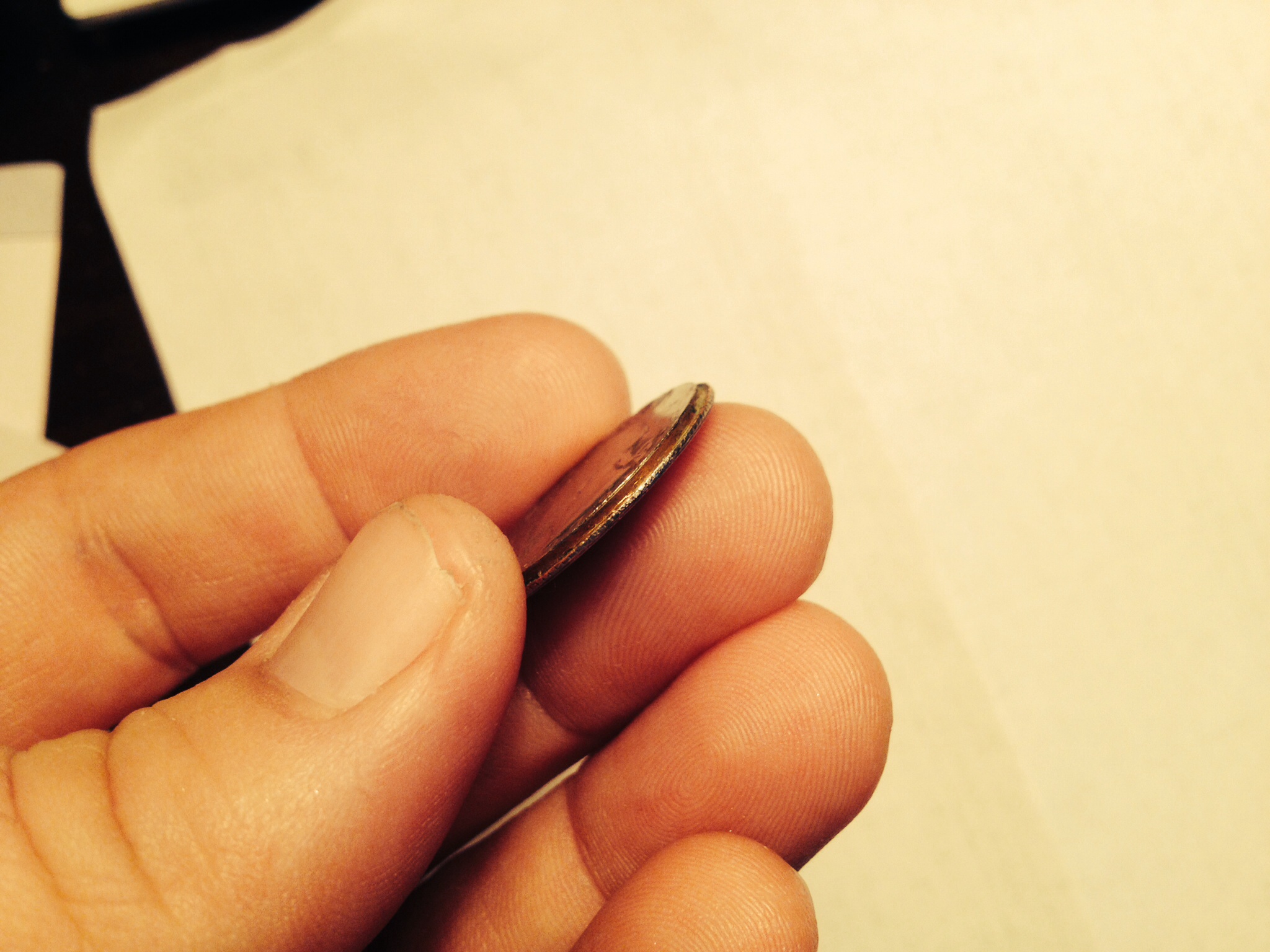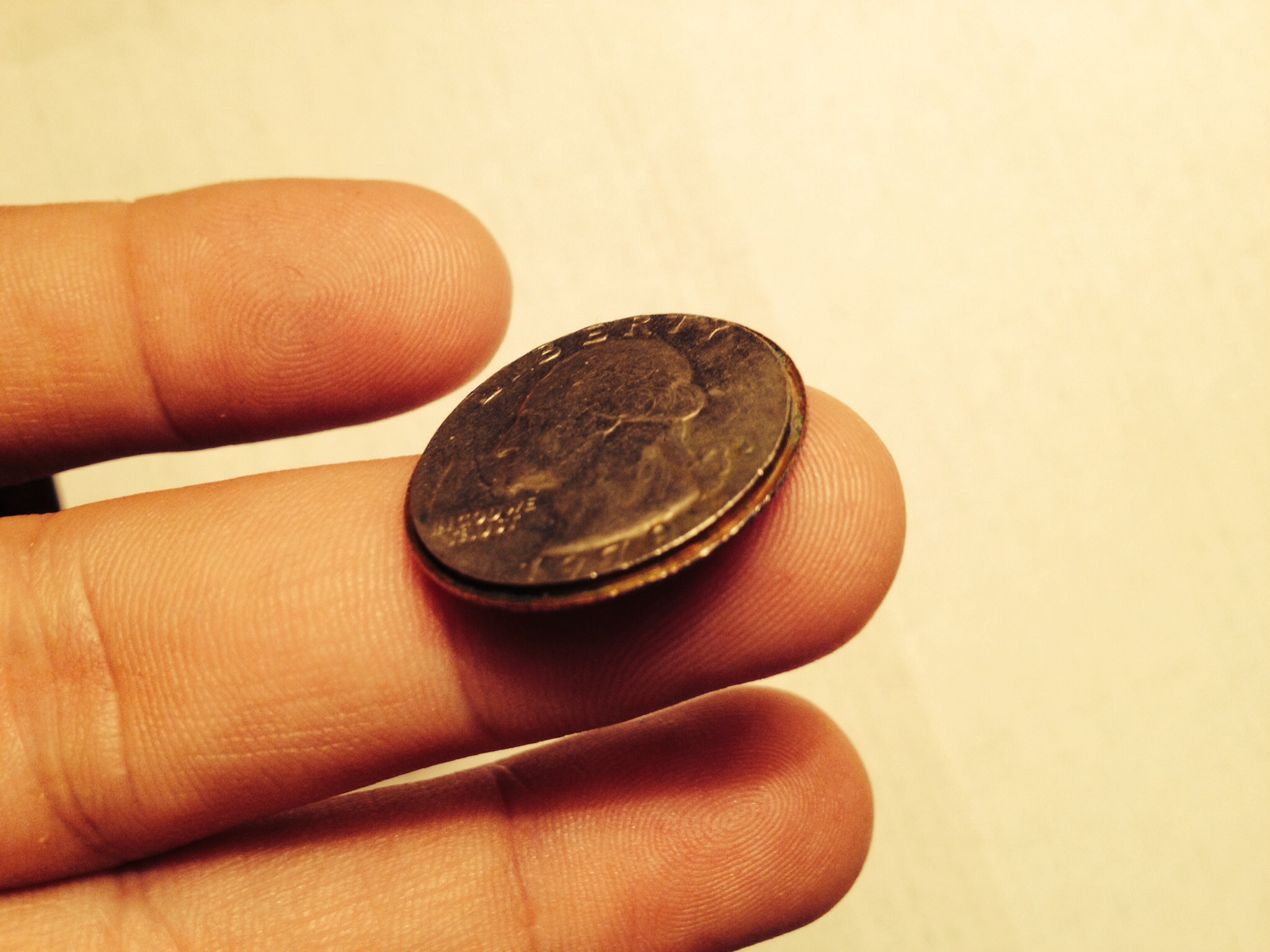 Hi, I have a few of those around here someplace. It is a Post Mint creation so it is not an error. I've seen this work so I know that the story is true but strange. Back in the day when pay phones were more common, A quarter altered that way could have a piece of thread tied around the deformed edge. The coin with the string could be dropped into a phone or vending machine just far enough to trigger the mechanism that would activate the phone or vending machine. The coin could then be pulled up and out of the slot that the coin was dropped into. It was a way to rip off phone companies and vending companies. I didn't believe it either until a guy in NY showed me how it worked. This guy had it down to such a science that the thread he dangled the coin on was knotted in such a way that the coin could only go into the phone so far. The length of the thread was different for the vending machines but the theory was the same. All that being said, I am pretty sure that that is what you have.