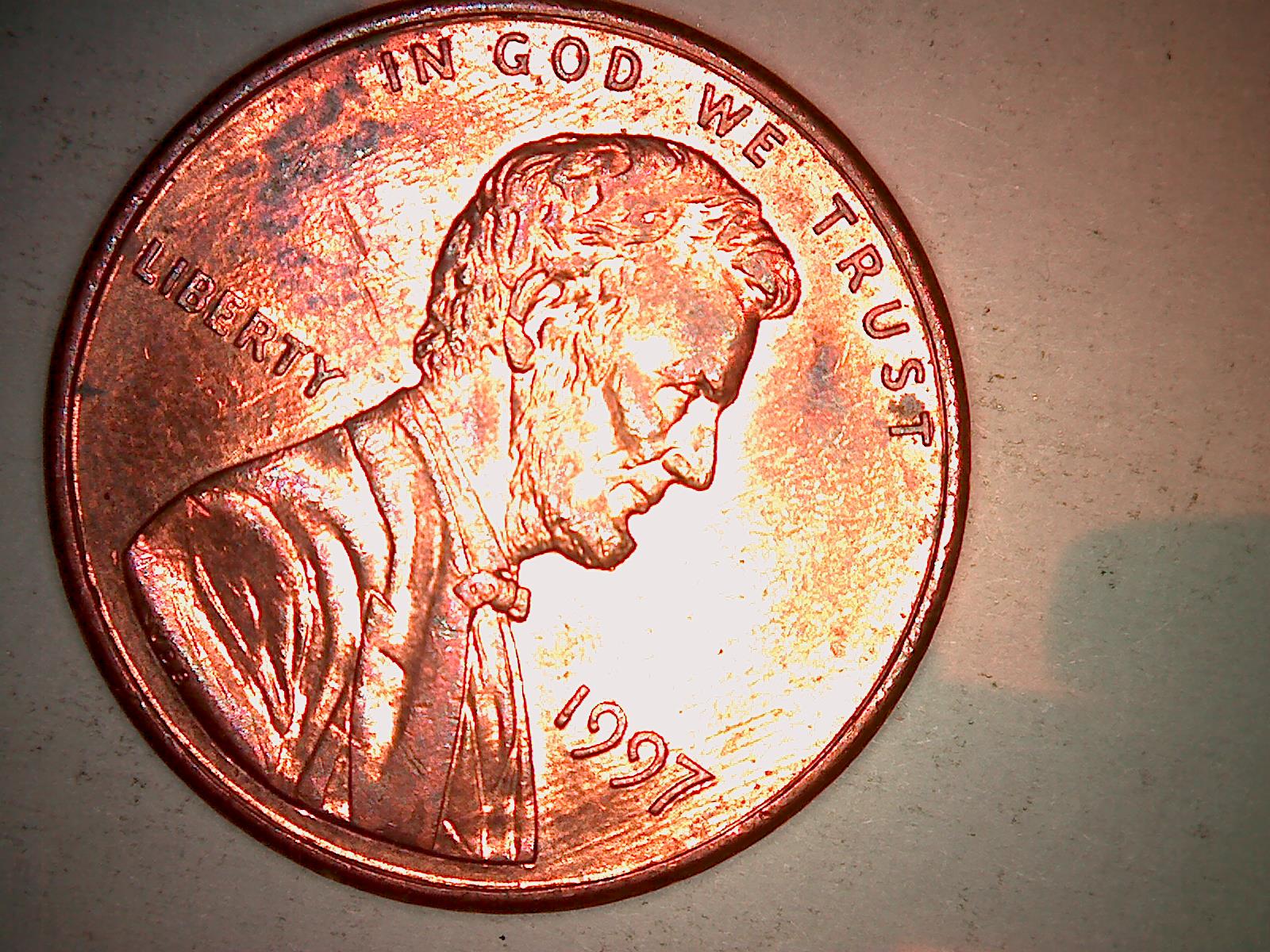 An early image that I set up many years ago. This is three 1997 Doubled Ear cents. You can see what the doubling looks like to the lower left of the ear and you can see that minus lighting and slight camera angle issues, that the doubling is identical on each. This is what you want to see on a 1997 Doubled Ear. Your image is much better. Please forgive my older camera