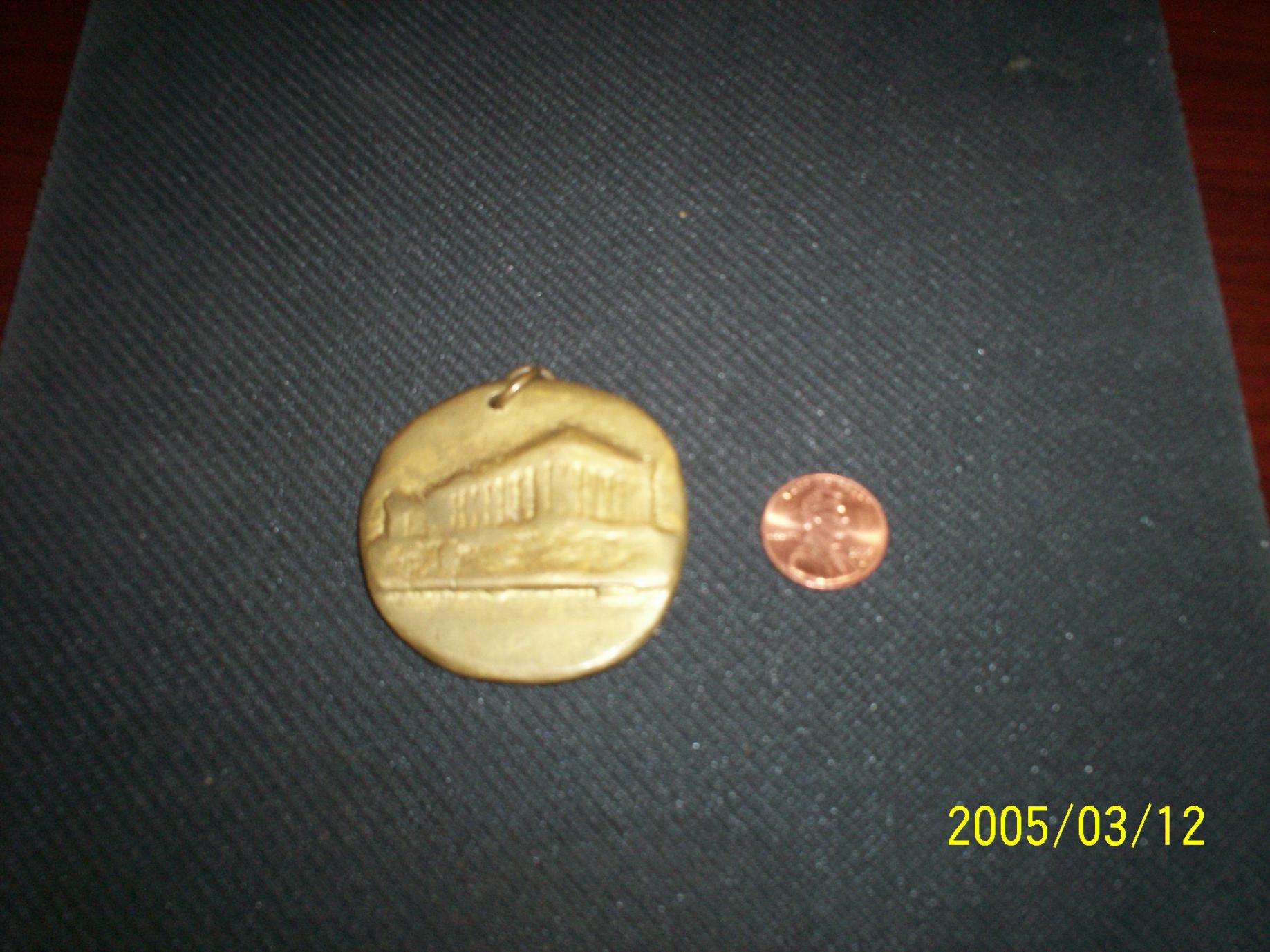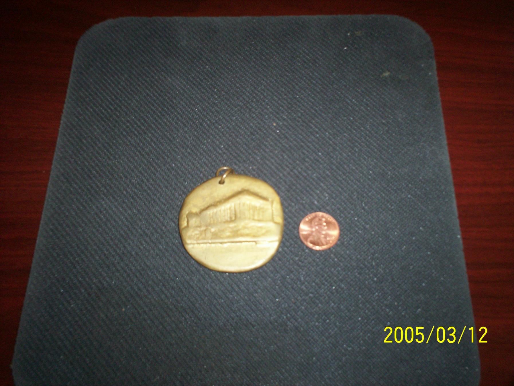 Thank you everyone for your responses. I am in agreement that its some sort of trinket, it must be cast and not stamped..there is evidence of sanding around the edges. I cant get a closer picture, no macro feature on the camera so those pics were as close as i could get without it being totally blurry.
