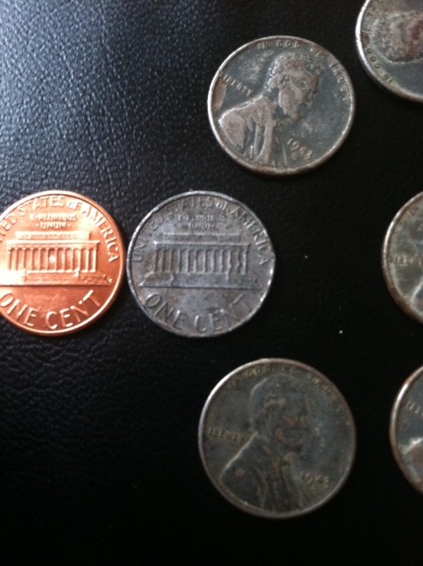 I dont have the steel zinc plated onhand. The copper-plated zinc planchet is 2.5G +/- 0.3G. The copper planchets are 3.7G +/- 0.4G. I agree it the copper plating was removed by acid most likely.