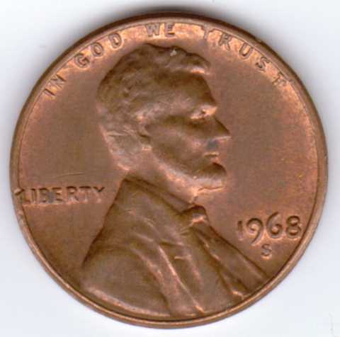 1968 S Mintage 258,270,001 Lowest minted non-proof memorial coin That is not proof. Either that or it was dropped in battery acid.