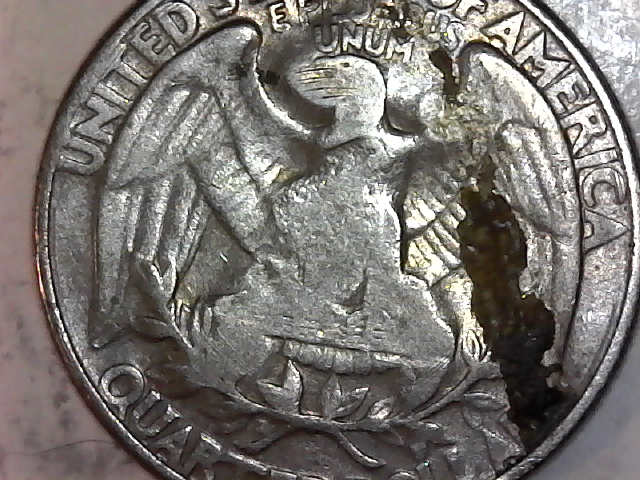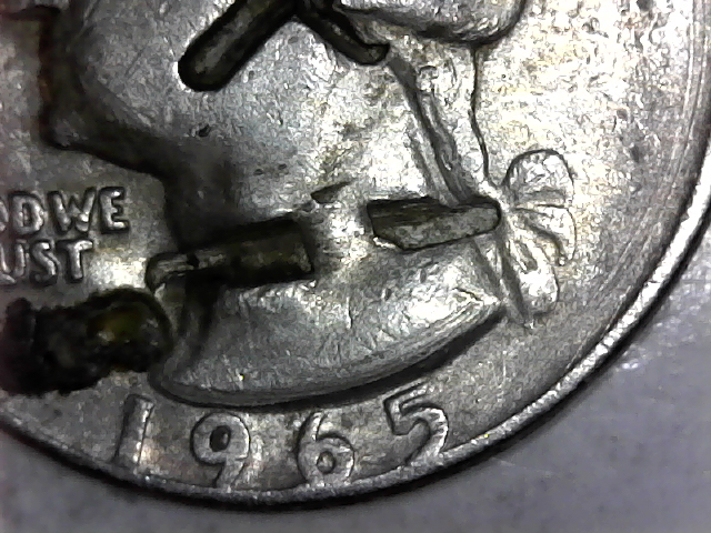 Hi all. This is a first-time posting and I'm looking for more experienced opinions. I recently found this 1965 quarter in a bank roll and I am curious if it is a genuine strike-through error on the obverse (foreign material), and perhaps something else going on the reverse? The dark spot below the IGWT on the obverse and the dark streak on the reverse right wing appear to be dried grease or some form of muck, where the reverse shows possible sign of the outer cladding layer abutting and chipped (???). The eagle's head area between the wing tips has a ripple in the metal face between E Pluribus and Unum that is not discernible when you look at the coin from the horizontal. Do you feel its worth sending to get graded and cleaned?