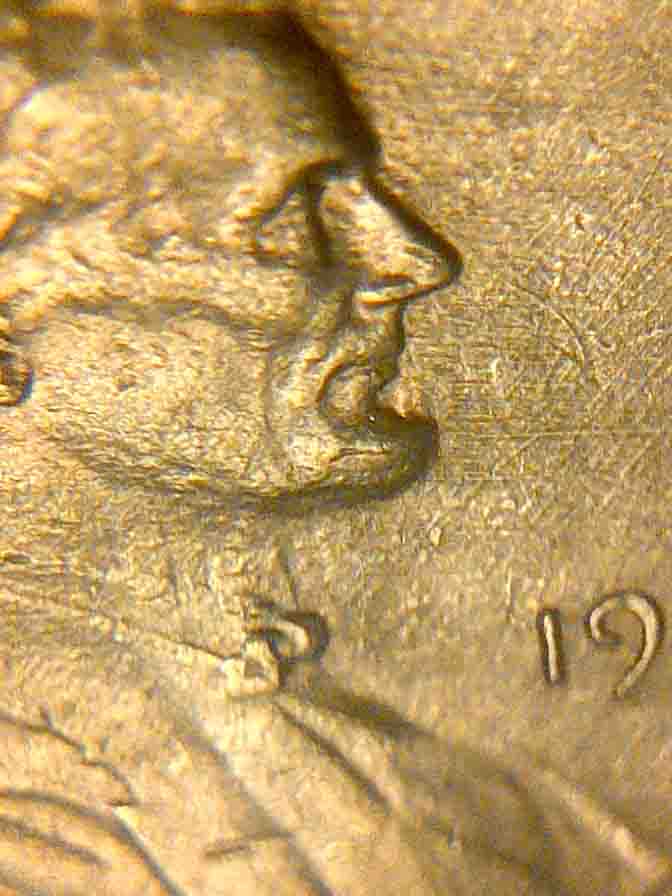 Hrm this one looks tricky because it looks like it could just be some sort of die deterioration, damage or it could be a die clash. Think someone who can better attribute this would know for sure. But i'm leaning towards die clash.