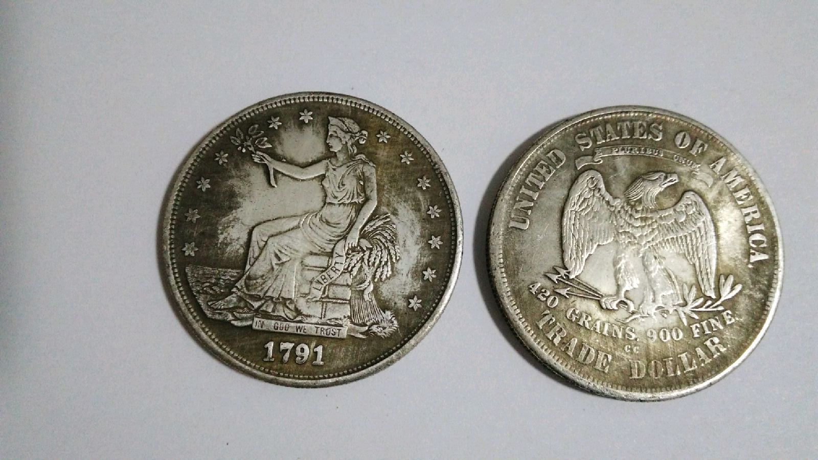 Kazuma and bsshog40, you beat me to it. 1791 date on a trade dollar.... It is a reproduction (not authentic)