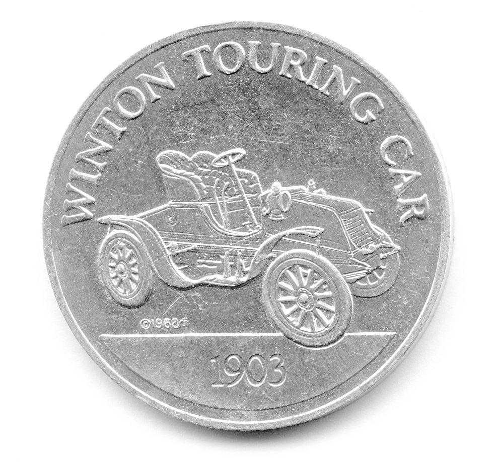 Upon closer examination, I noticed that (on the car side of the coin) there is a date with copyright symbol, 1968, AND what appears to me to be the facility that made these 'coins' ... isn't that the Franklin Mint symbol?