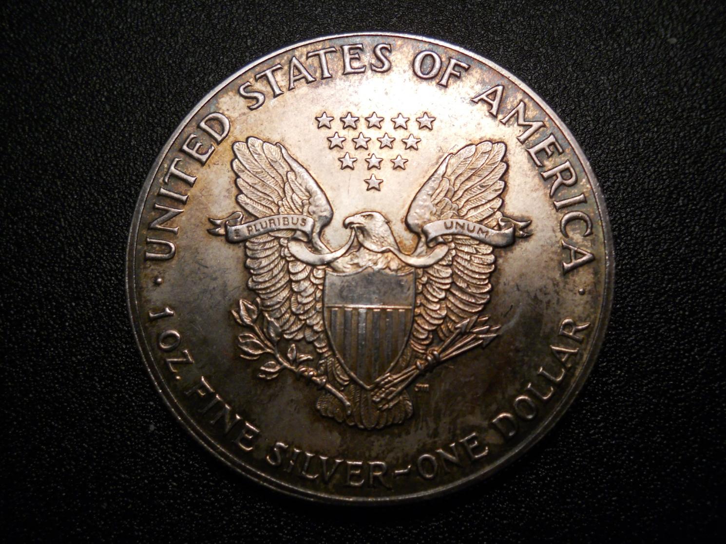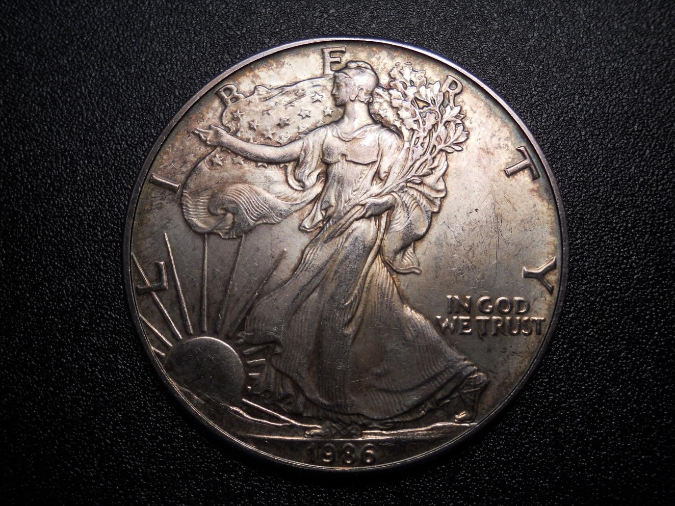Recently I had a post about finding a roll of silver dimes. While I didn't find another one of those (that would be epic) I did "find" something else. If you didn't already know, I work at a grocery store and we get all types of people coming in paying with cash. Well, yesterday, while I was outside taking someone's groceries to their car, a woman came in and paid with a 1986 Silver Eagle. My cashier had no clue what it was and took it as a dollar coin b/c she didn't know what else to do. About a half hour later I was looking in her till and I saw it in the extra drawer and I asked where it came from. Apparently an older woman had come in and bought some of her groceries with it. It is sad to think that people don't even recognize what a silver eagle is. I mean, its not like it says "1oz fine silver" on the back or anything....