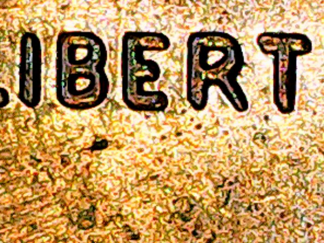 I can perhaps see the splits on the "E" and "T" of LIBERTY. Better/clearer picture would help though.