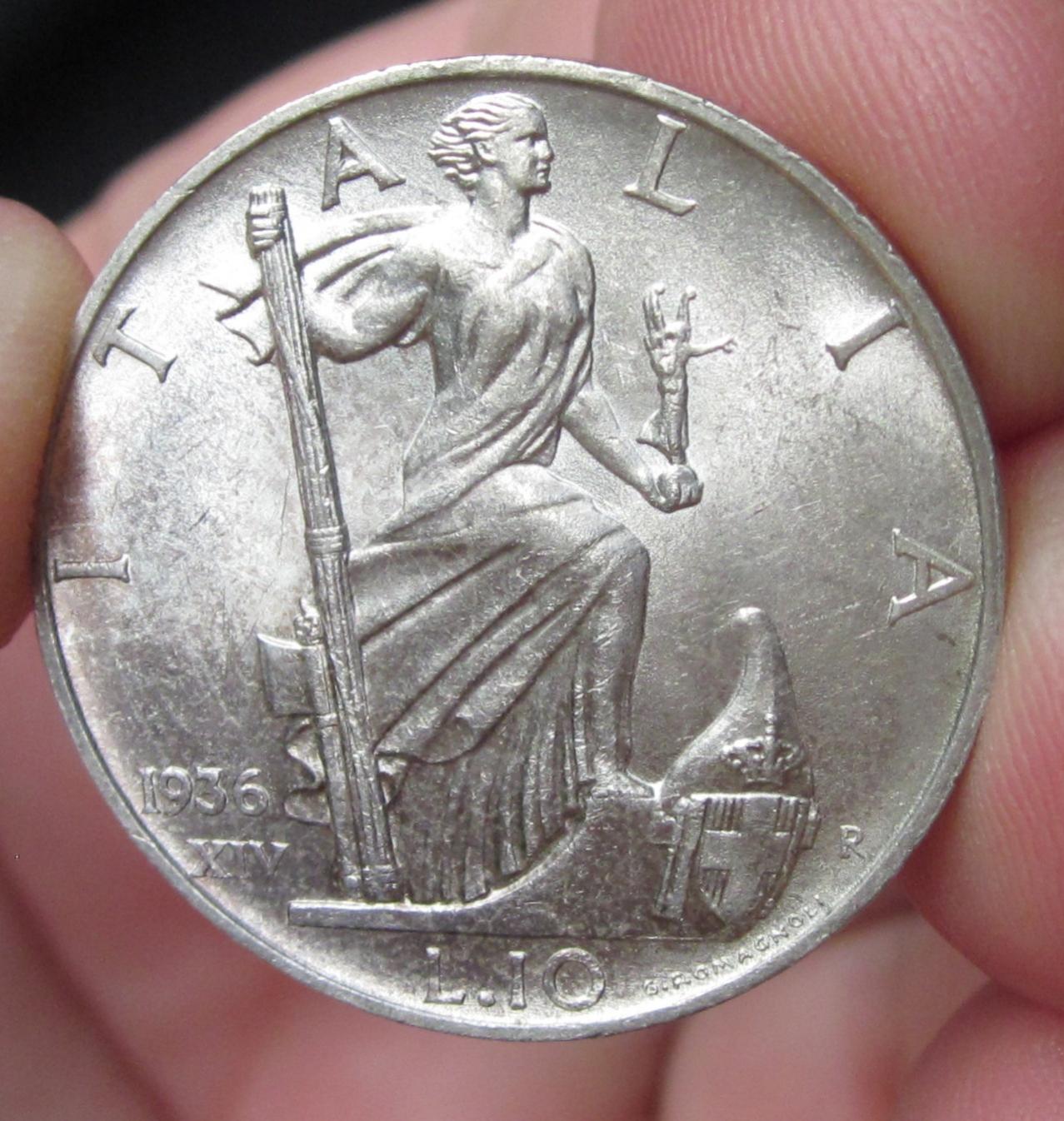 Here is a 1936 Italy 10 Lire purchased at the ANA show. This one should make a nice addition to my Italian type coin set. IMO the art is very nice on many Italy coins made during the reign of Victor Emmanuel III. Emperor Victor Emmanuel III was the King of Italy from 1900 to 1946. Several of the world coin dealers at the ANA were asked specifically for this coin. Amongst all the dealers, only two dealers offered me nice examples. (I thought this type coin would be more commonly available). IMO this one shows some very nice detail. :smile I hope that it is not just a high quality fake