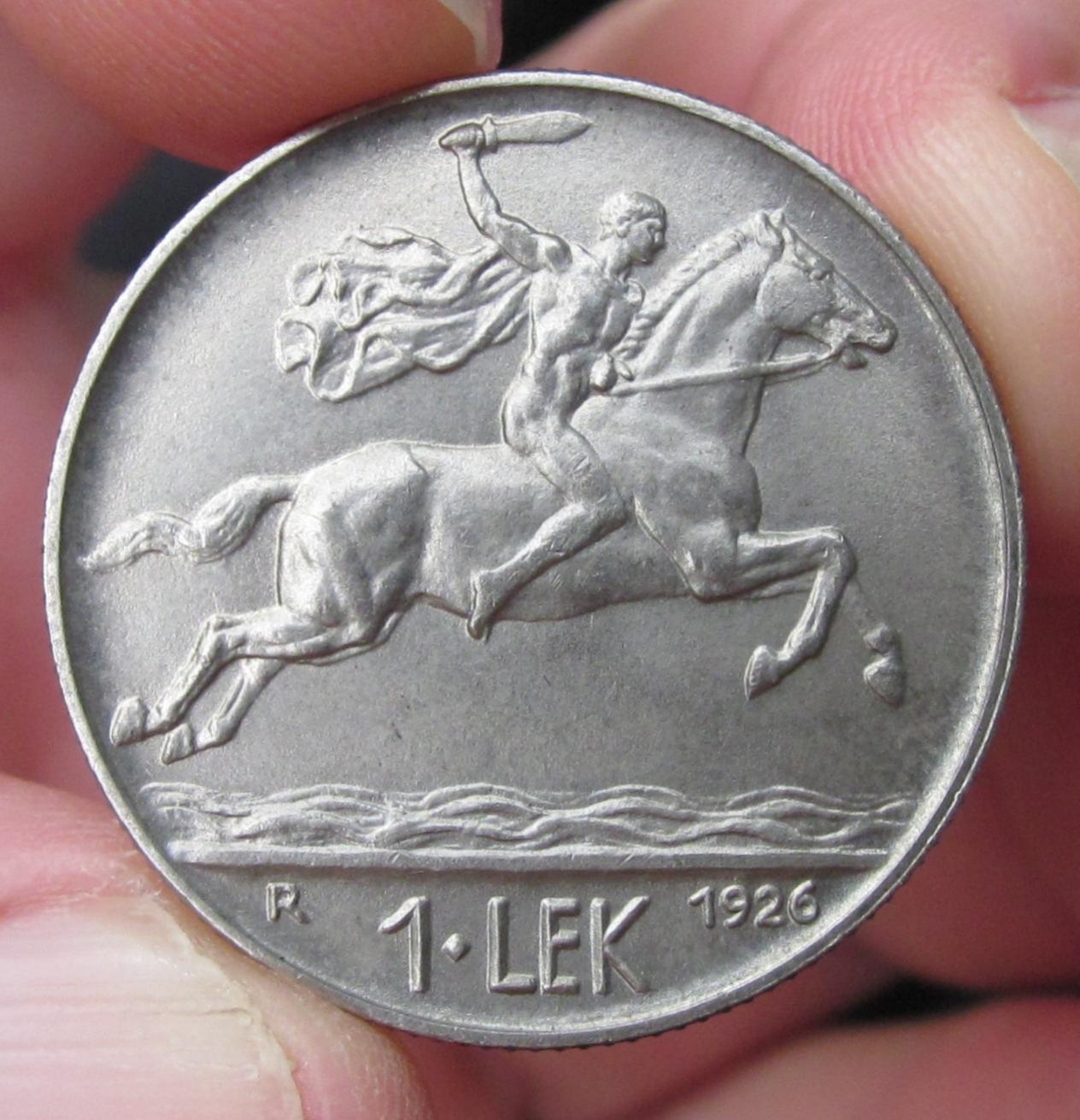 1926R Albania 1 Lek This next NEWP is a 1926 Albania 1 Lek. Like the previous Italian coin, I purchased this Albania coin for the beauty of its design. The 1926 date on this coin places it during the reign of King Zog I (before the Italy occupation in the 1939 timeframe). This coin was not minted in Albania. It was minted on the other side of the Adriatic Sea in Rome Italy. It has the R mint mark for Rome.