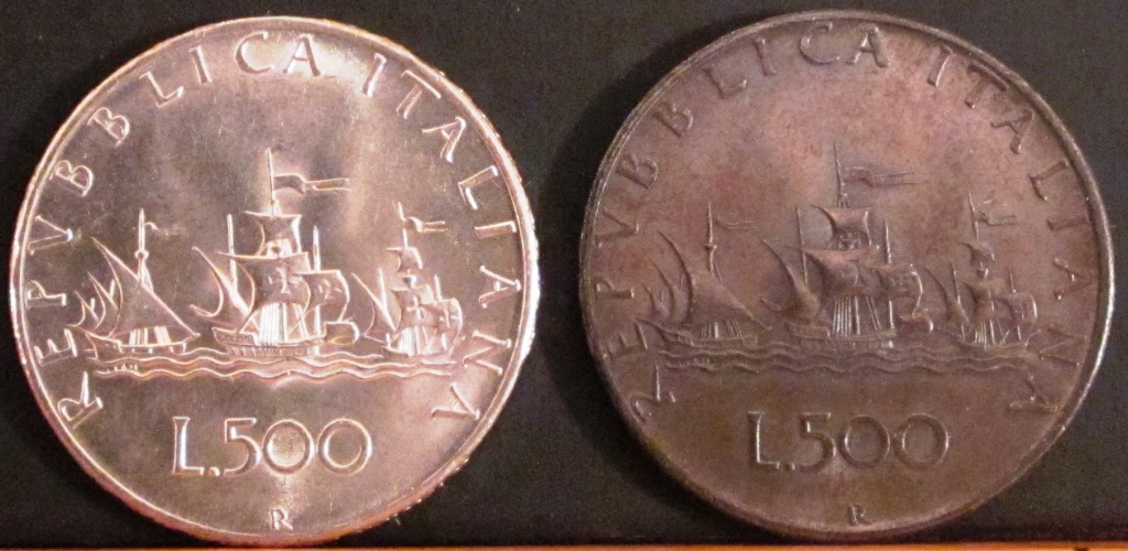 You must be referring to the 500 Lire coin. "She" is a young lady in Medieval dress. It has become one of my favorites. I have purchased a few uncirculated (or nearly so) for just a little above silver bullion value. They were minted from 1958 to something like 1980. The date is on the edge. Here is a thread depicting my favorite example of the Italy 500 Lire. http://www.cointalk.com/t69049/