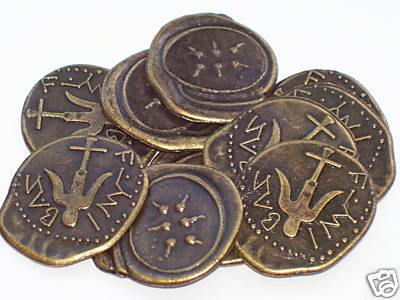 Its the Coin of Alexander Jannaeus (103 BC to 76 BC). Obv: Seleucid anchor and Greek Legend: BASILEOS ALEXANDROU "King Alexander". Rev: Eight-spoke wheel or star within diadem. Hebrew legend inside the spokes: "Yehonatan the King". Looks like your replica is from http://www.holylandgiftsonline.com/product/71157