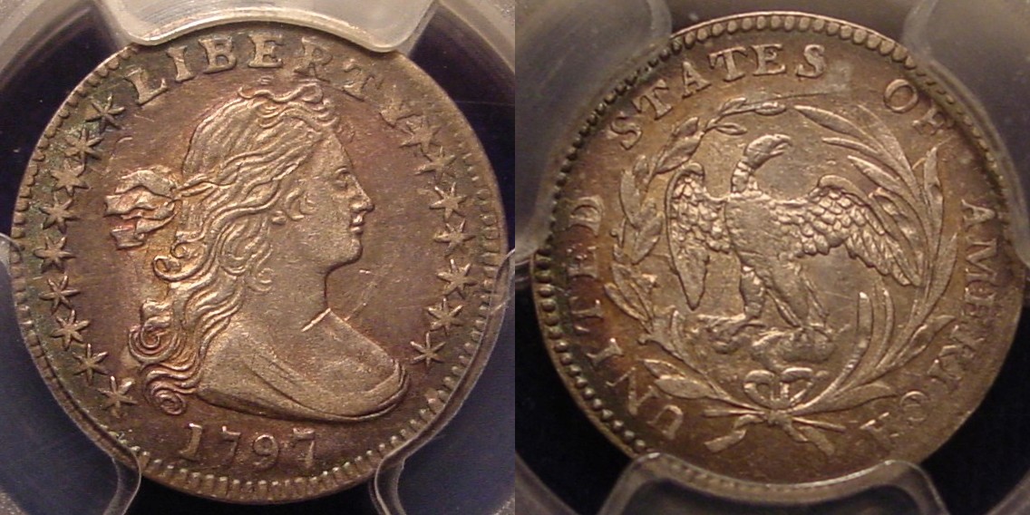 Yes, they are expensive. The half dime is graded AU-53. It would have been an AU-58 except for the scratch on the bust. The dollar is graded EF-45. They don’t come any better than that for the grade.