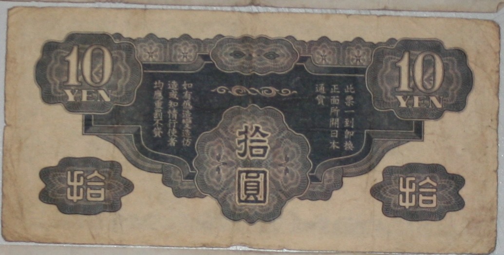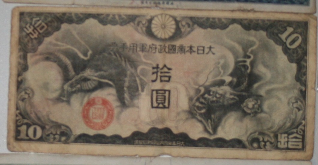 Japanese Military 10 YEN (Eleven Letter Title) No Block or Serial#, this is all the info I can find on this note,I know it is a bad photo, I took the photo with a bunch of other bills, if you need to see it better I will single out and take a better photo, any info would be greatly appreciated. Avenia