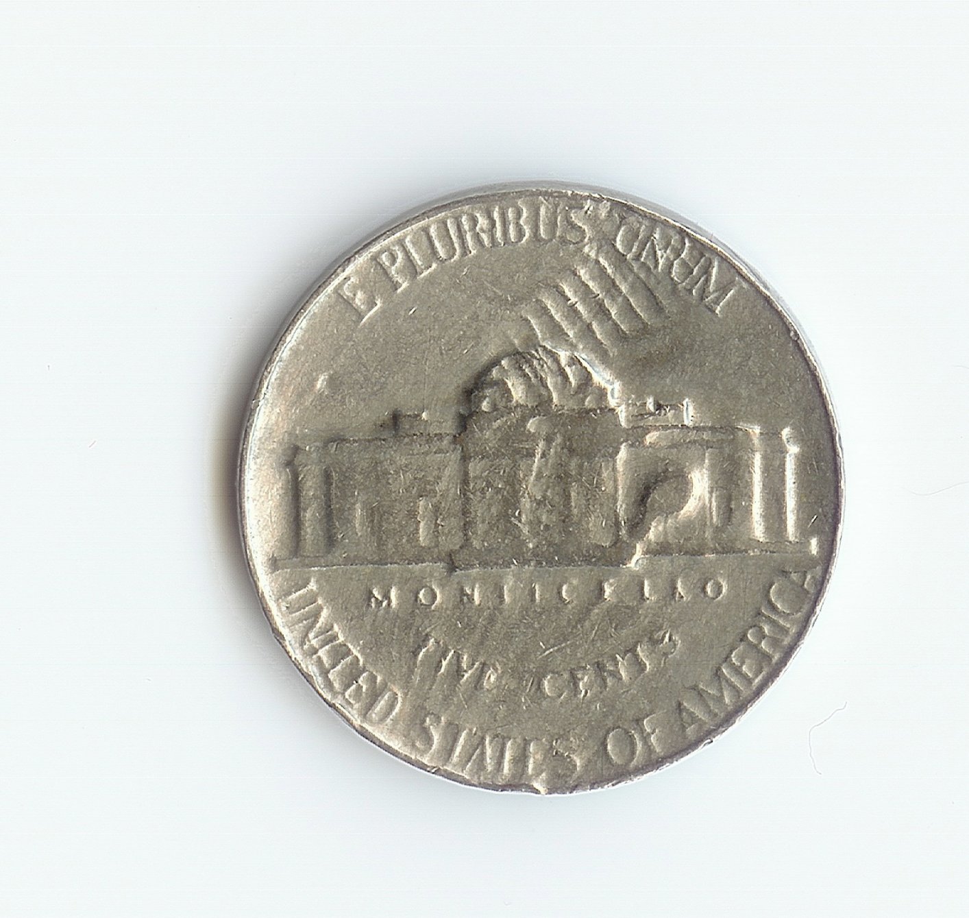 Damaged coin. Looks like someone smashed the reverse of a Lincoln Memorial Cent into the reverse of your coin. (Note how the damage is incuse on your coin.)