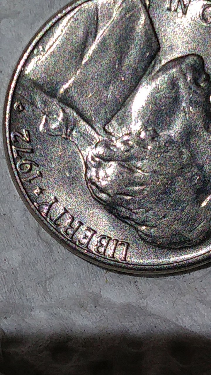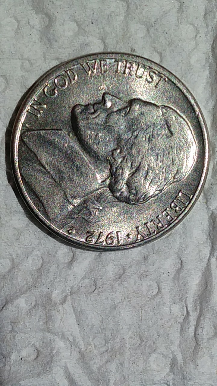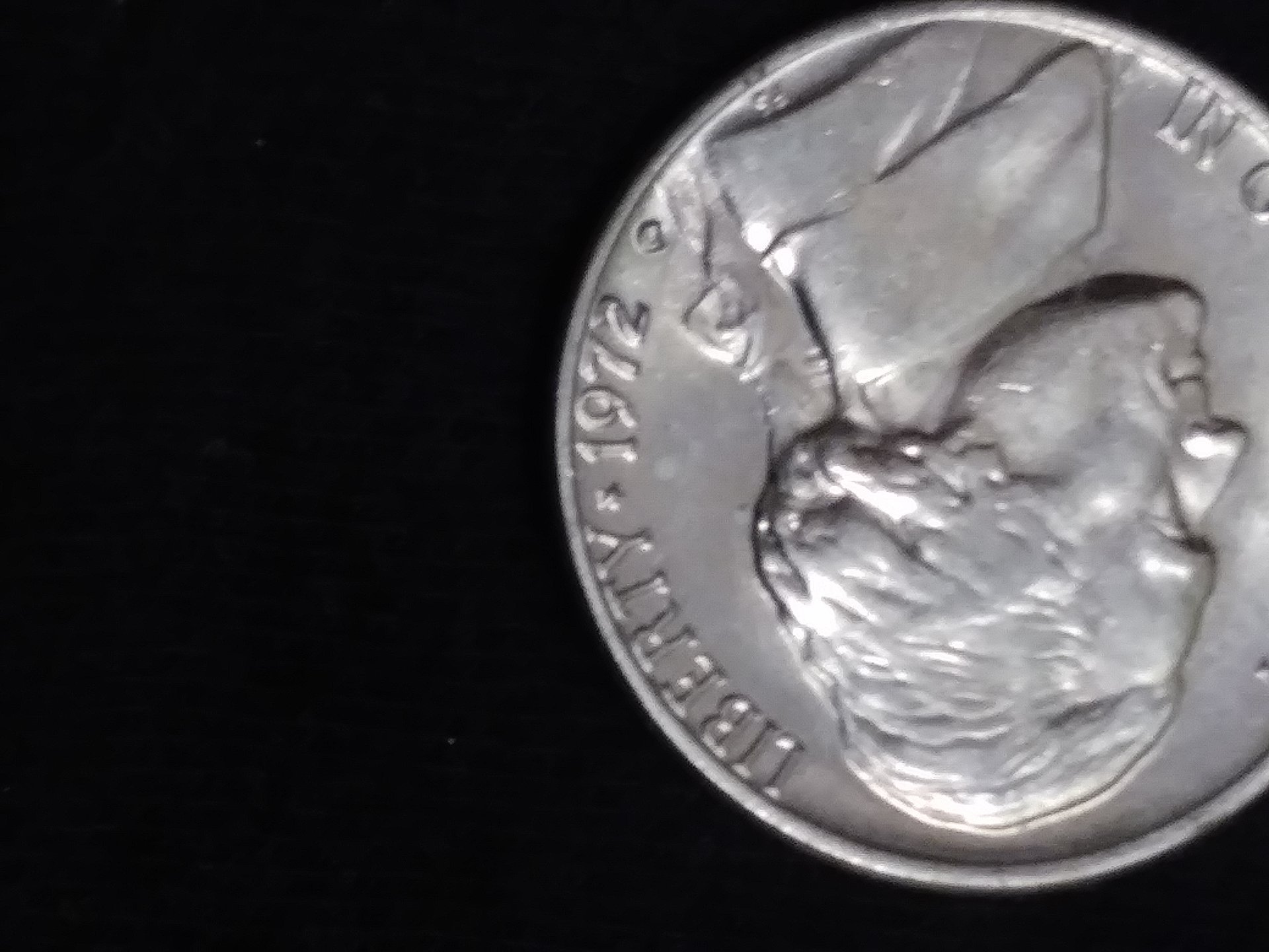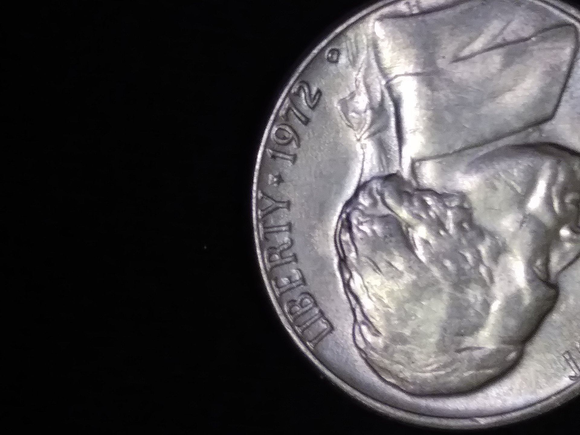 Look at the letters RTY in liberty and follow below them to the hairline on the head. There is a thick strip on the border between the hairline and field of the coin. When you compare this area with a normal jefferson of the period it is not the same. You will have to enlarge my photo to see it but its clear as day when you do. Its not the same on normal jeffersons and im not sure what could cause it. Its a bu coin thats been put away 40 years.