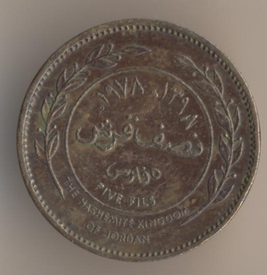 I have a few from Jordan, two from 1949 and the rest from the early 1960's: Jordan 20 Fils 1949 Jordan 50 Fils 1949 Jordan 1 Fils 1963 Jordan 5 Fils 1964 Jordan 10 Fils 1964 Jordan 50 Fils 1964 Jordan 100 Fils 1962